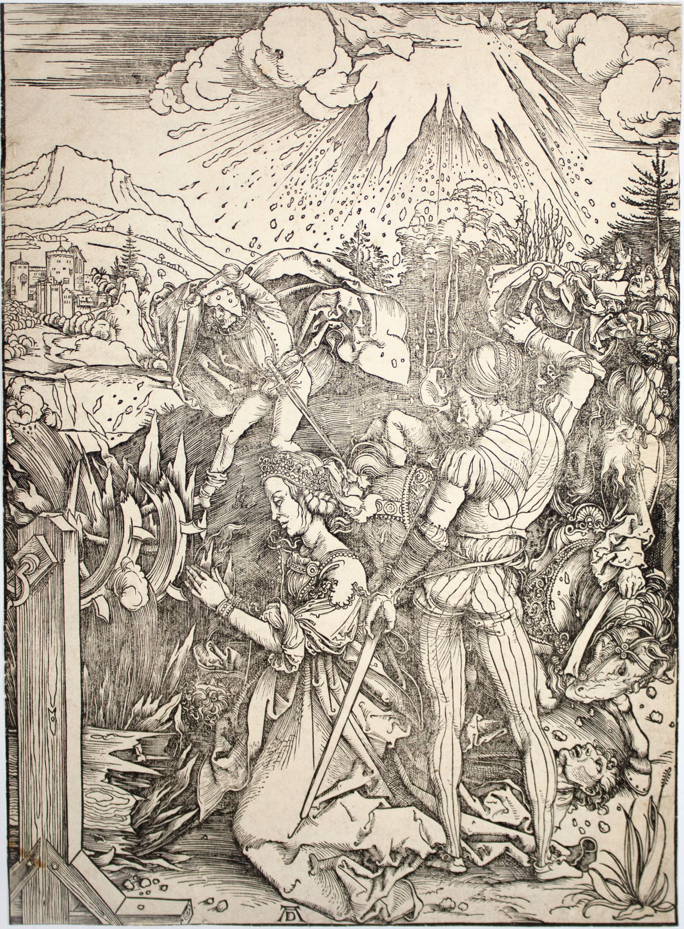 Woodcut by Albrecht Dürer of the martyrdom of Saint Catherine of Alexandria (287 - 305 AD).