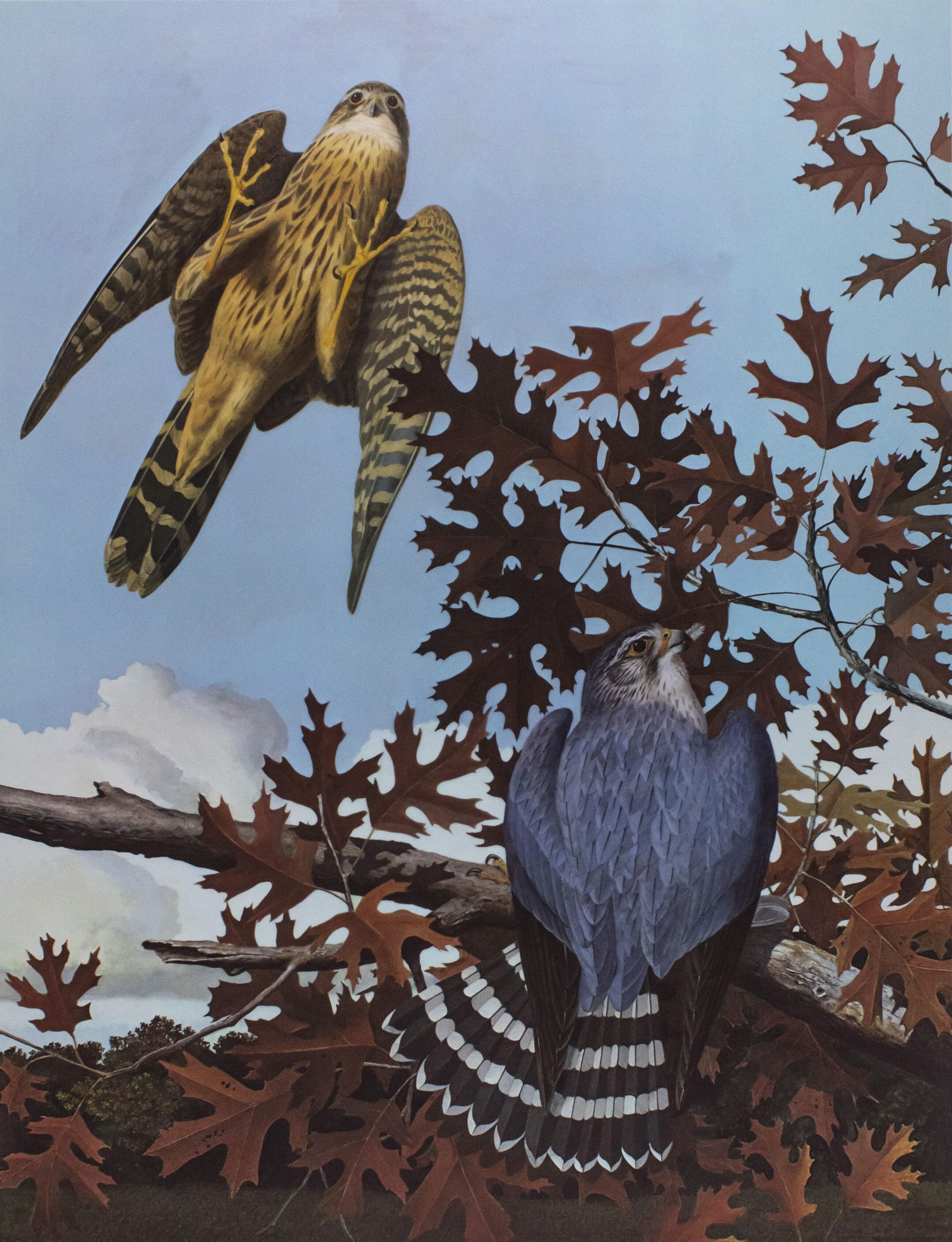Reproduction of watercolor of Pigeon Hawk. Printed on a Heidelberg press.