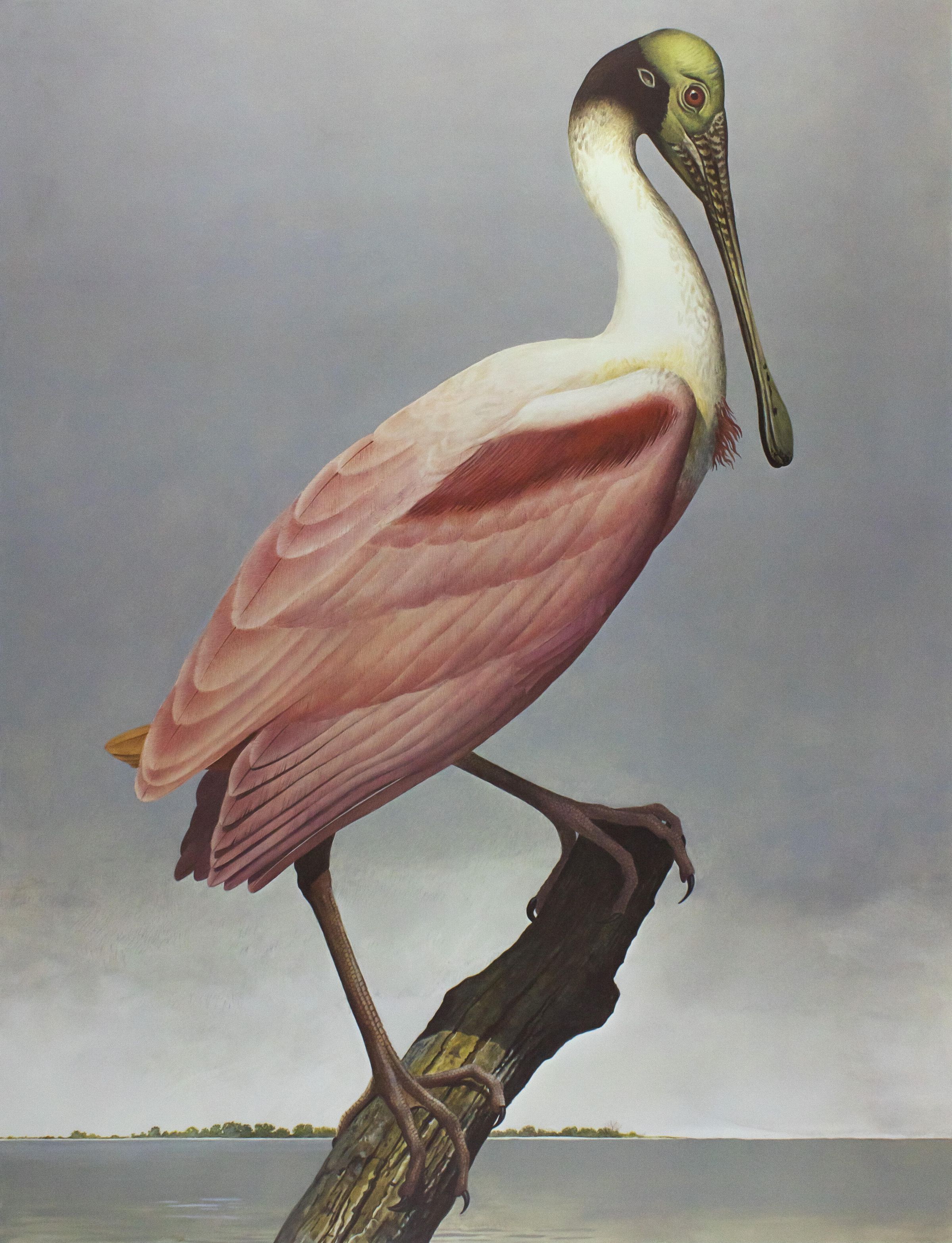 Reproduction of watercolor of Roseate Spoonbill. Printed on a Heidelberg press.