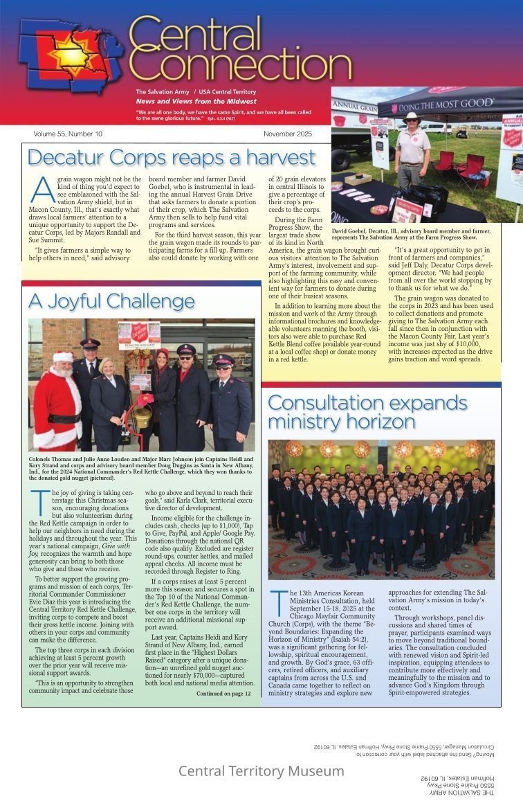 Central Connection magazine published by The Salvation Army USA Central Territory. This is the November 2025 issue, Volume 55, Number 10. 12 pages.Acquisition