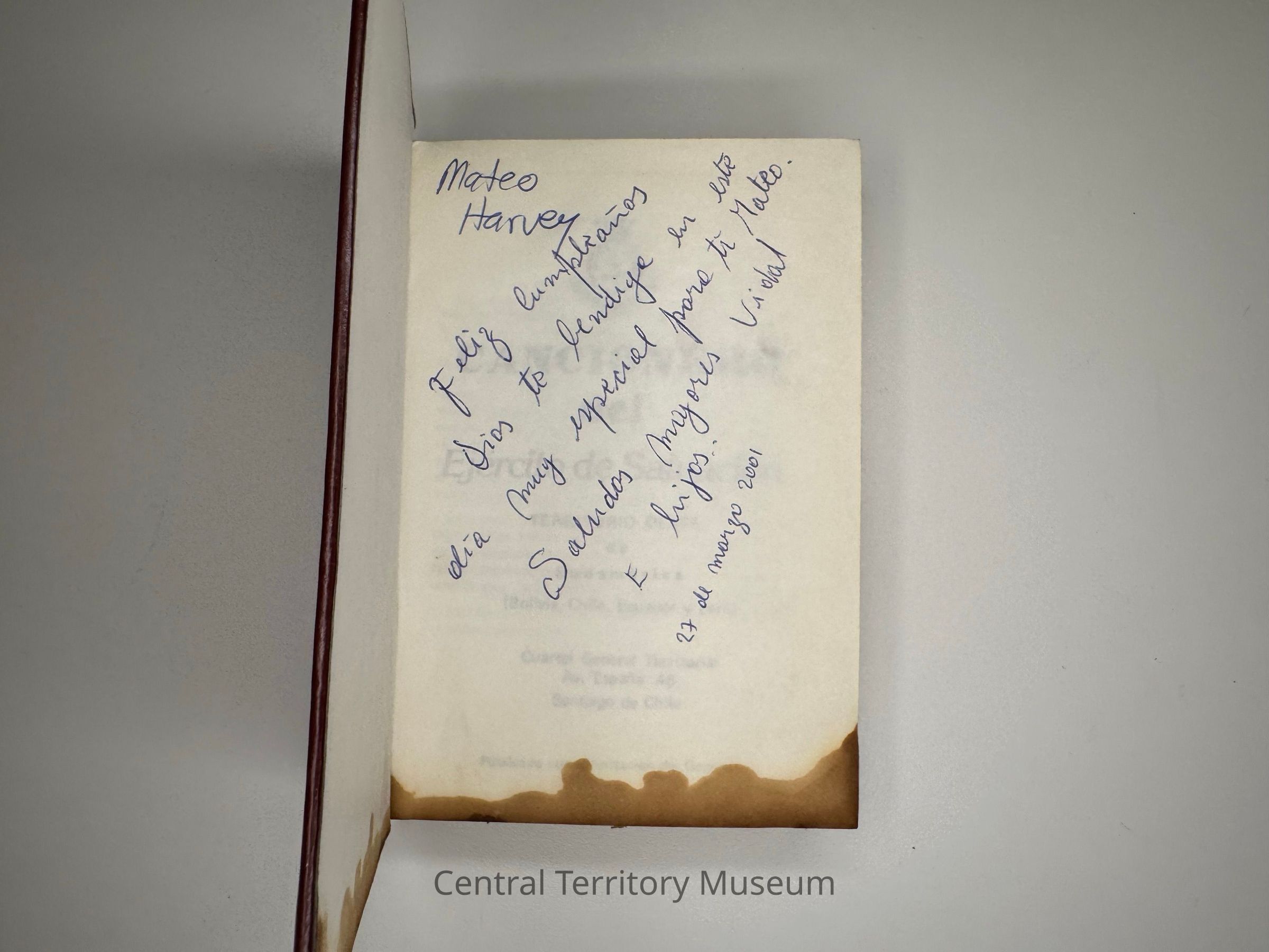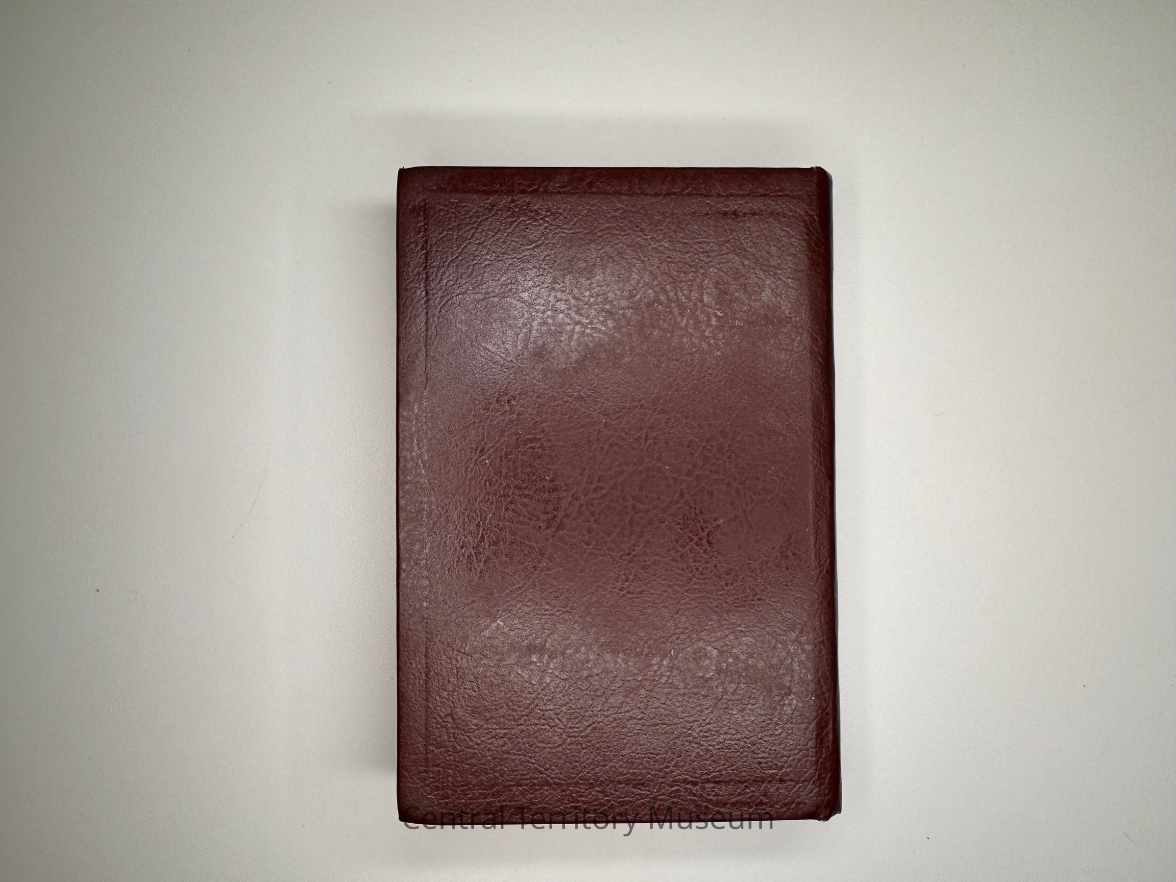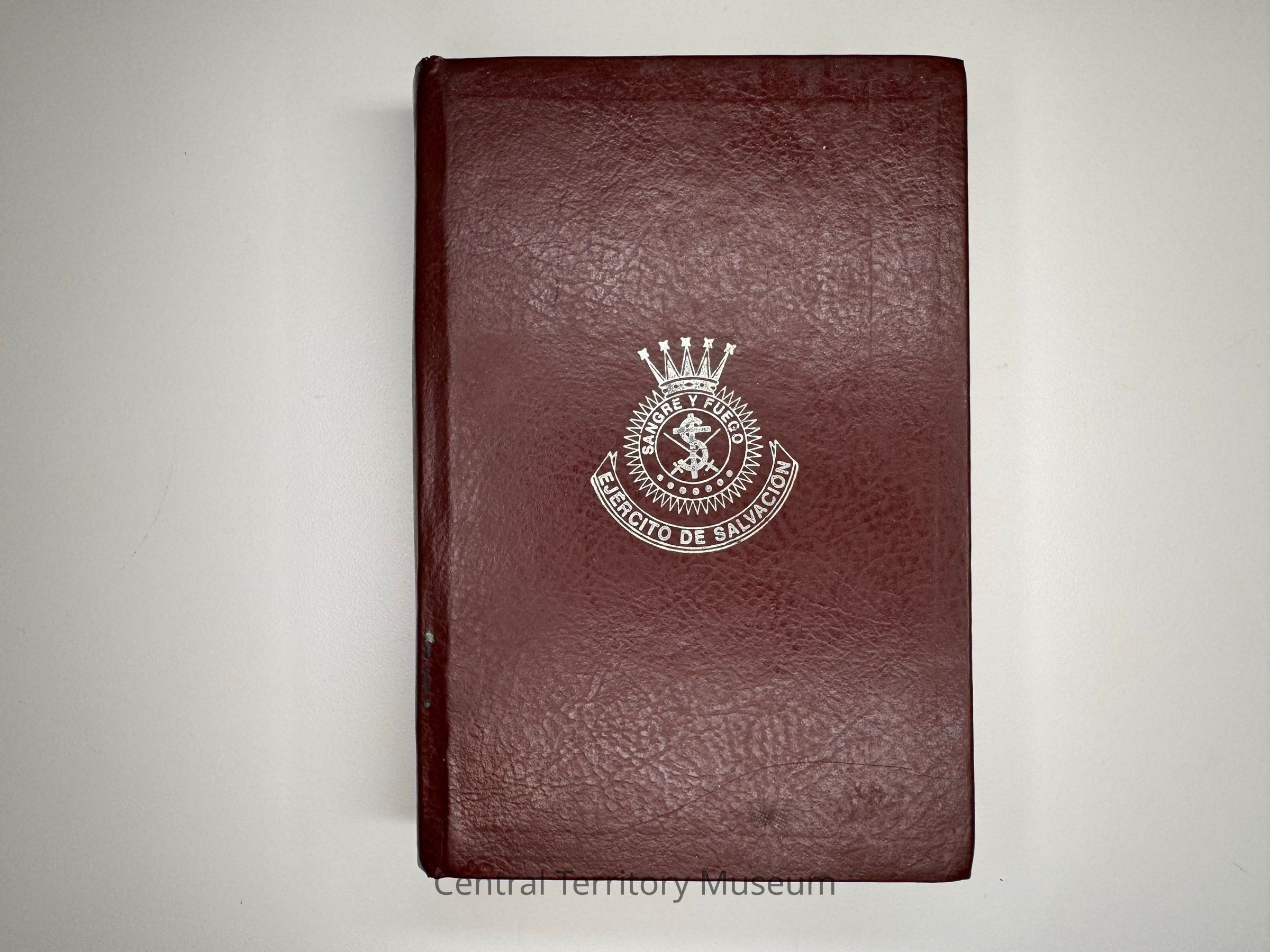 Physical Description: Hard leatherette book cover and binding. On the cover is a white Blood and Fire crest written in spanish saying, " Sangre y Fuego, Ejercito de Salvacion." 4.5 in x 6.5 in x 1.5 inAcquisition