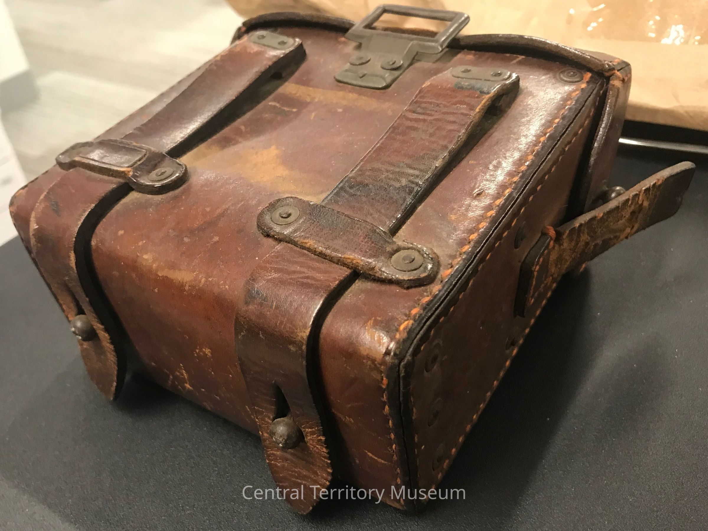 c) Binoculars cas, brown leather with metal buckle