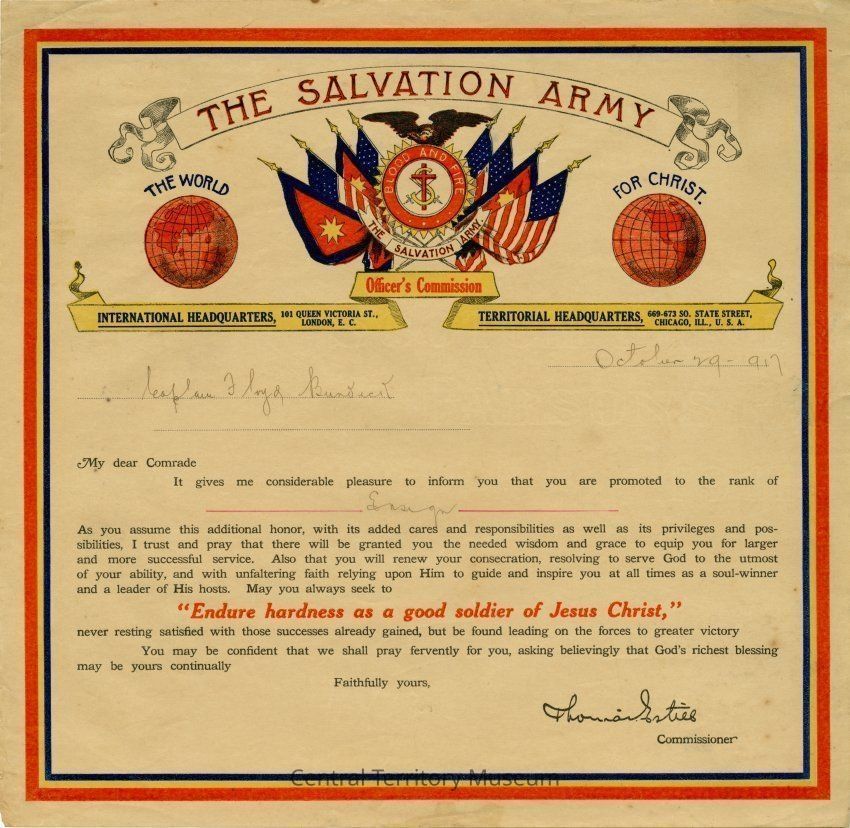 Floyd Burdick's Officer 1917 Commisssion Certificate assigning him the new rank of Ensign.