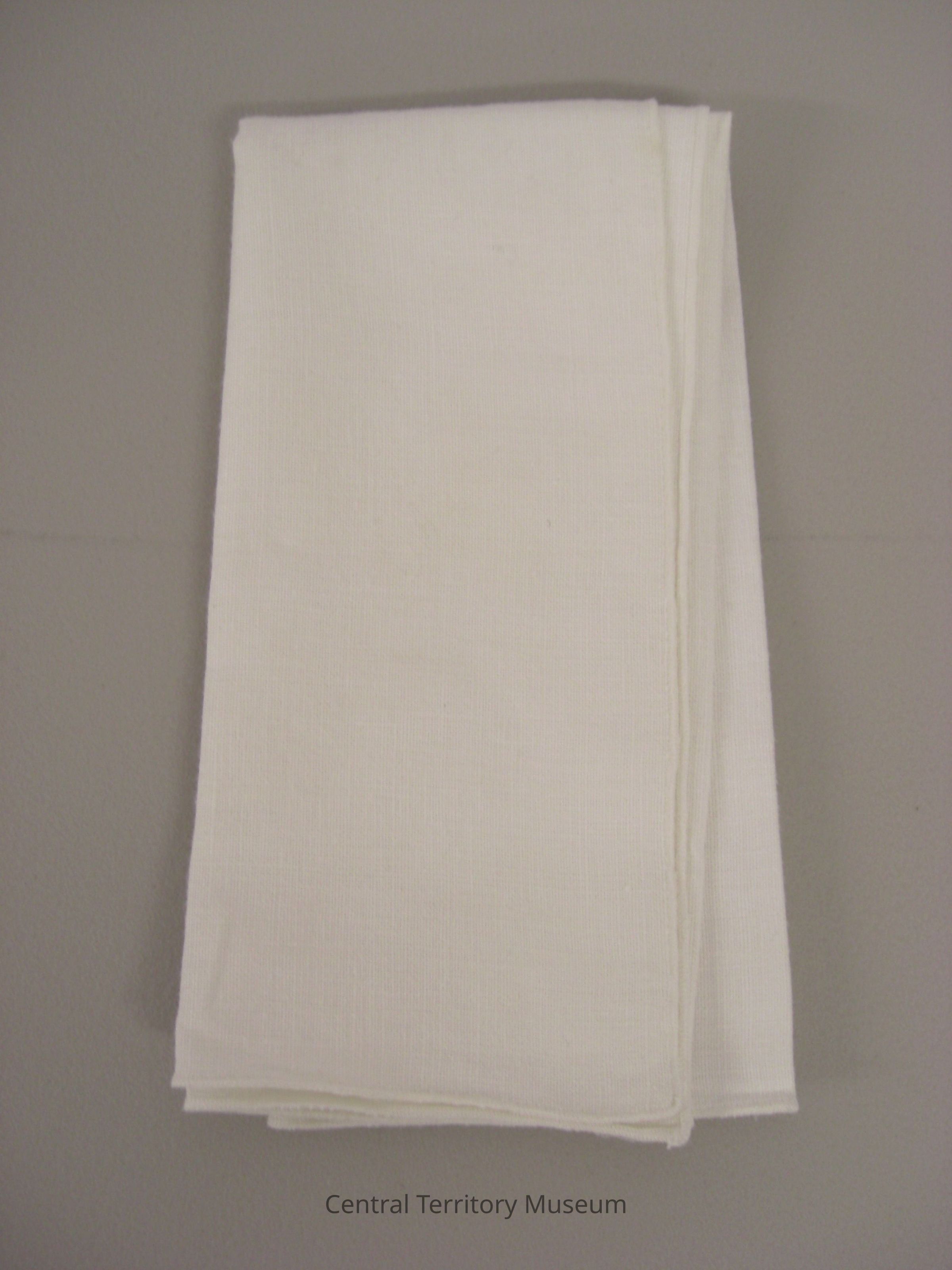 Corporal, white linen fabric, bound edges on all four sides.