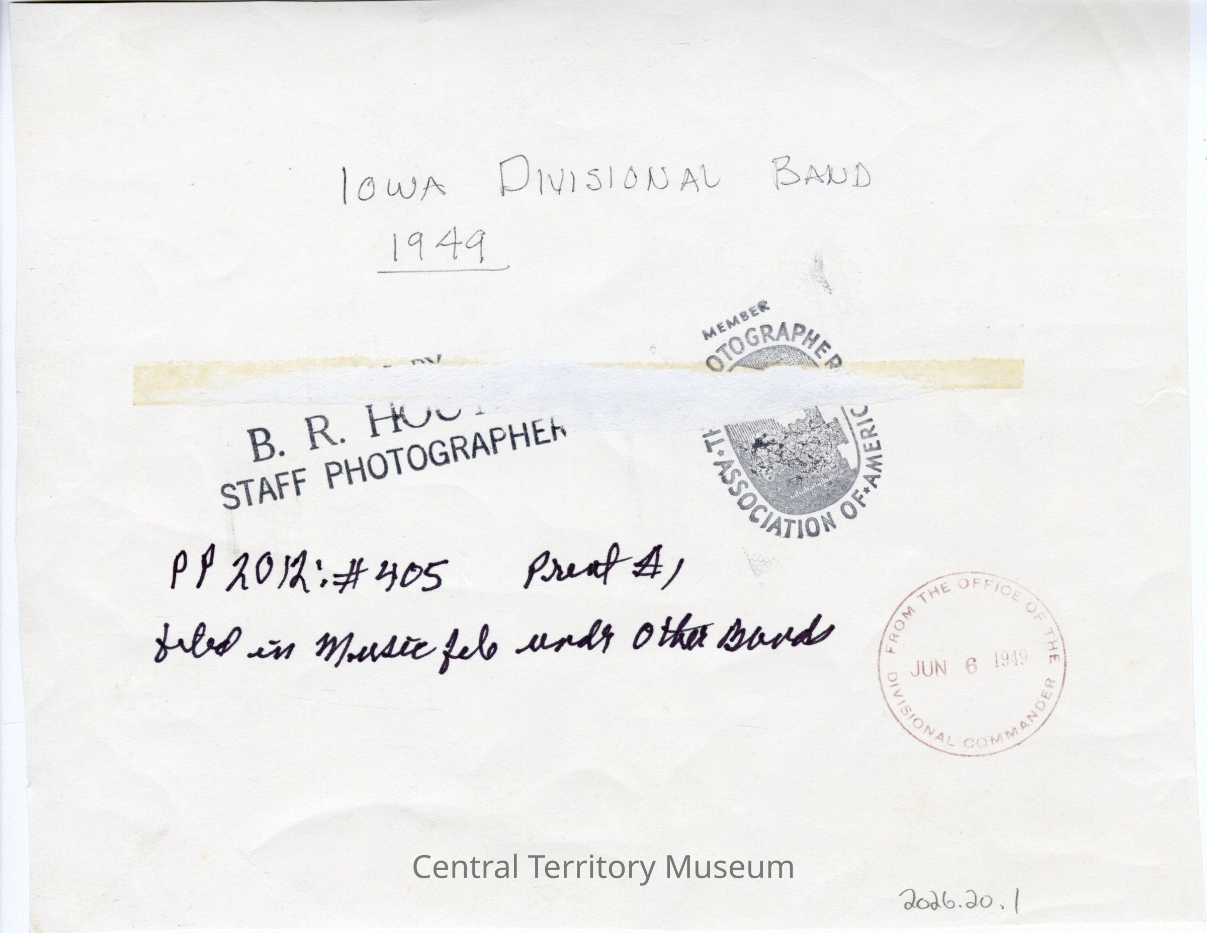 B.R. Houts / Staff Photographer / with stamp Member Photographer Association of AmericaLanguage