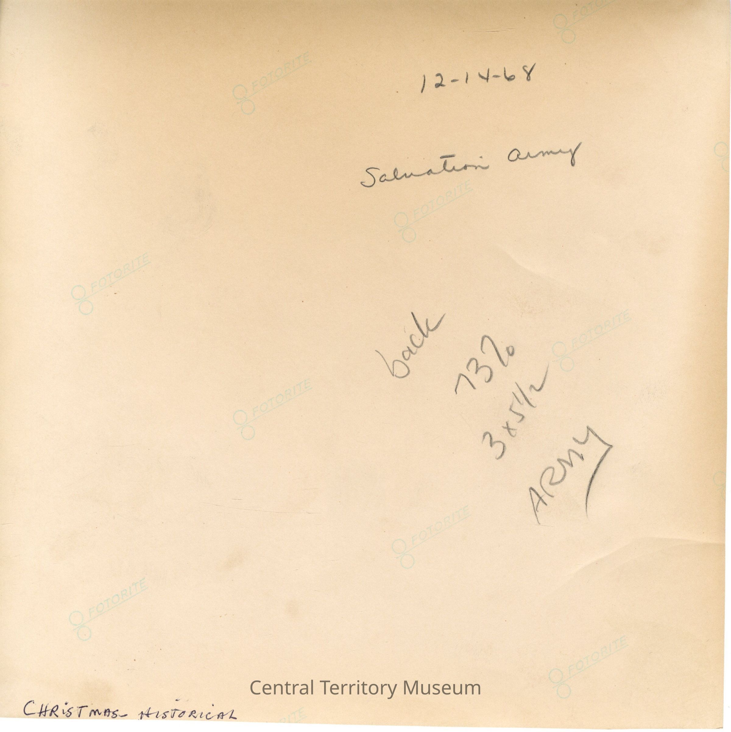 12-14-1968 Salvation Army / back 73% 3 x 5 1/2 ARMY