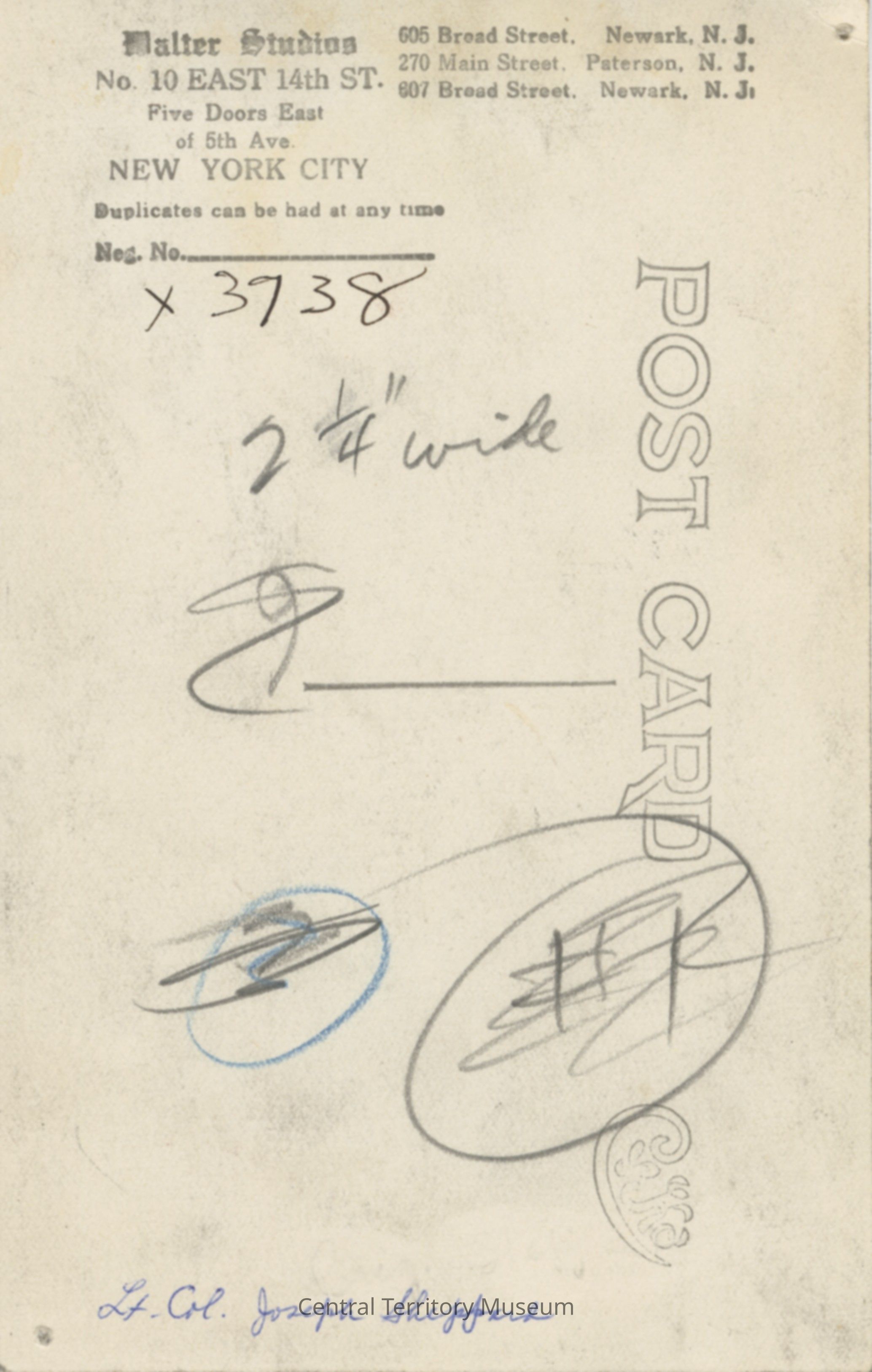 The back of the postcard is stamped with the name Walter Studios with all of its locations in New York City and in New Jersey. The publisher, AZO, is printed in the stamp box.