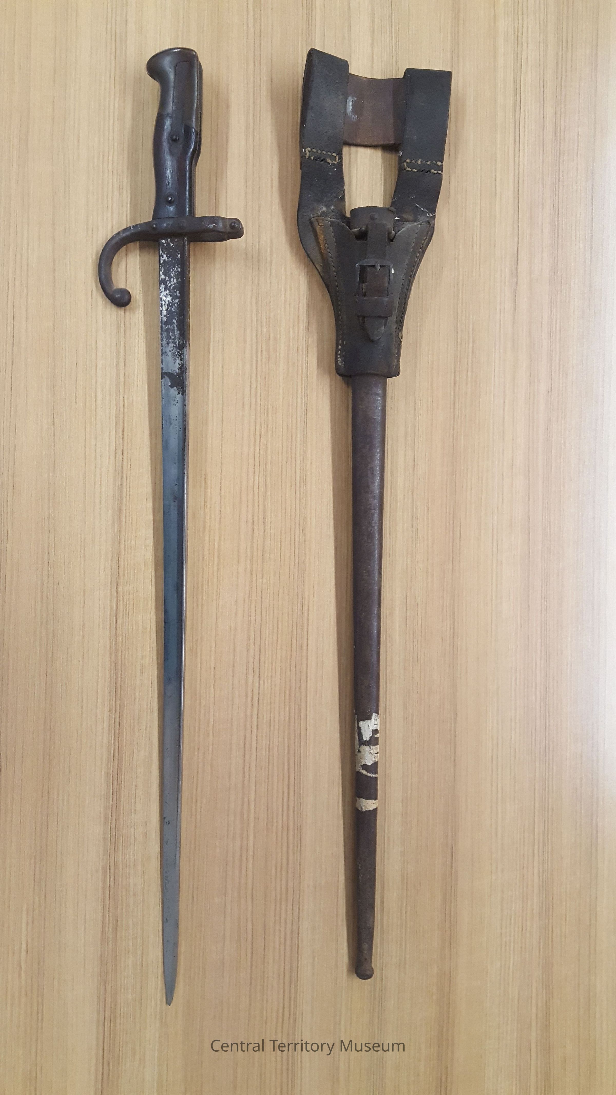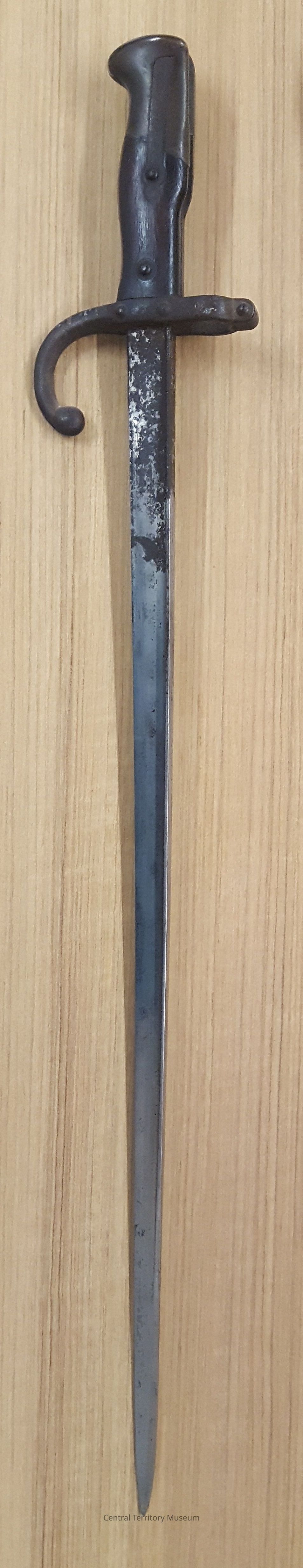 This particular bayonet was designed to fit the French Model 1874 "Gras" Infantry Rifle. This model was manufactured from 1874 until around 1885, when the bayonet was no longer standard issue. While it was no longer officially issued, this would have been used at the beginning of World War I.Acquisition