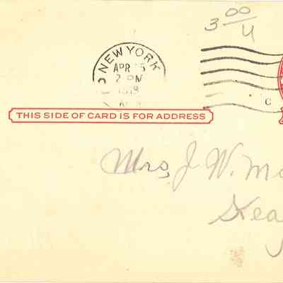 Postcards like this one were completed by Salvation Army workers on behalf of United States service personnel as they disembarked in New York from the return journey home from France or Germany.Acquisition