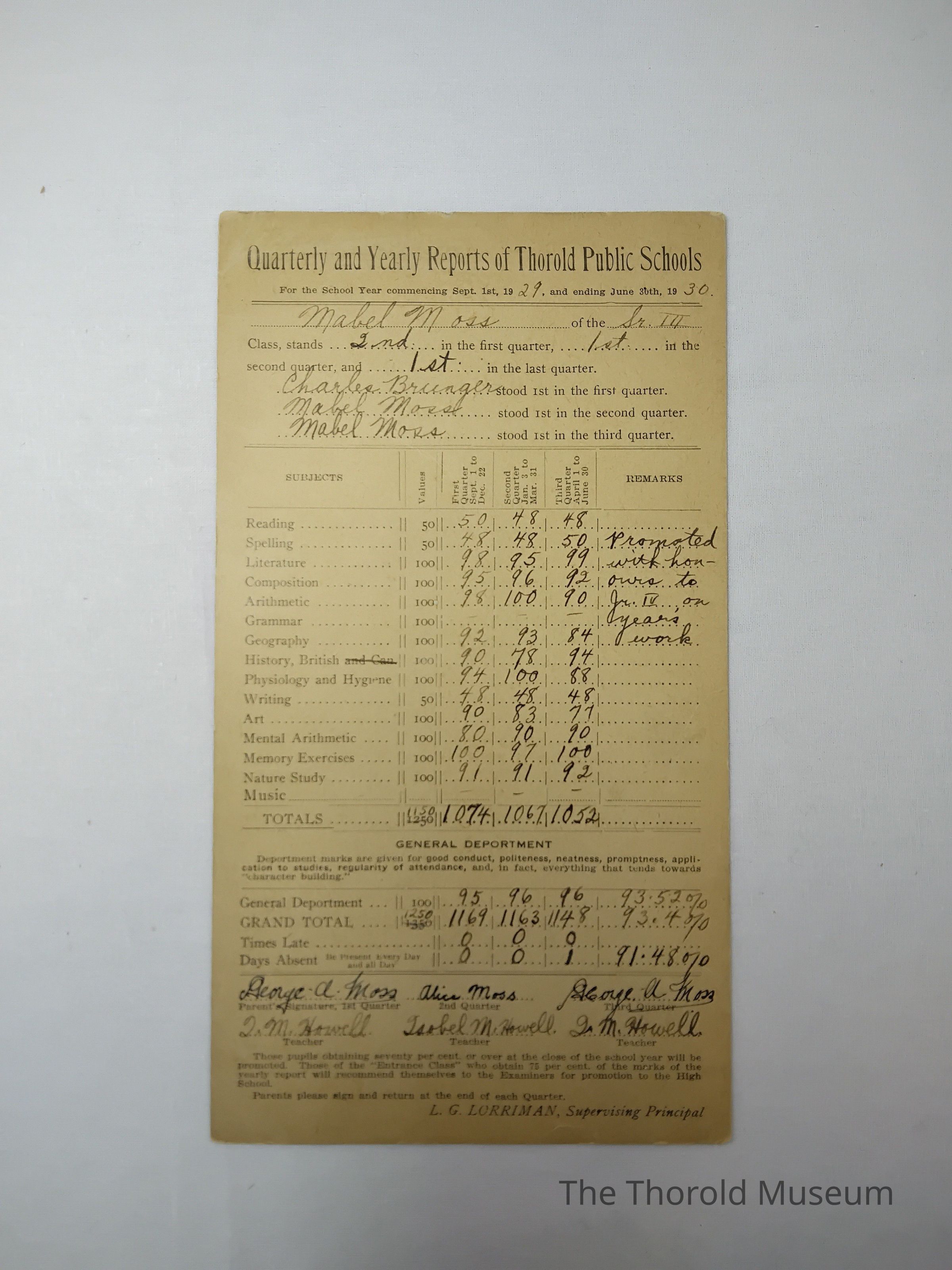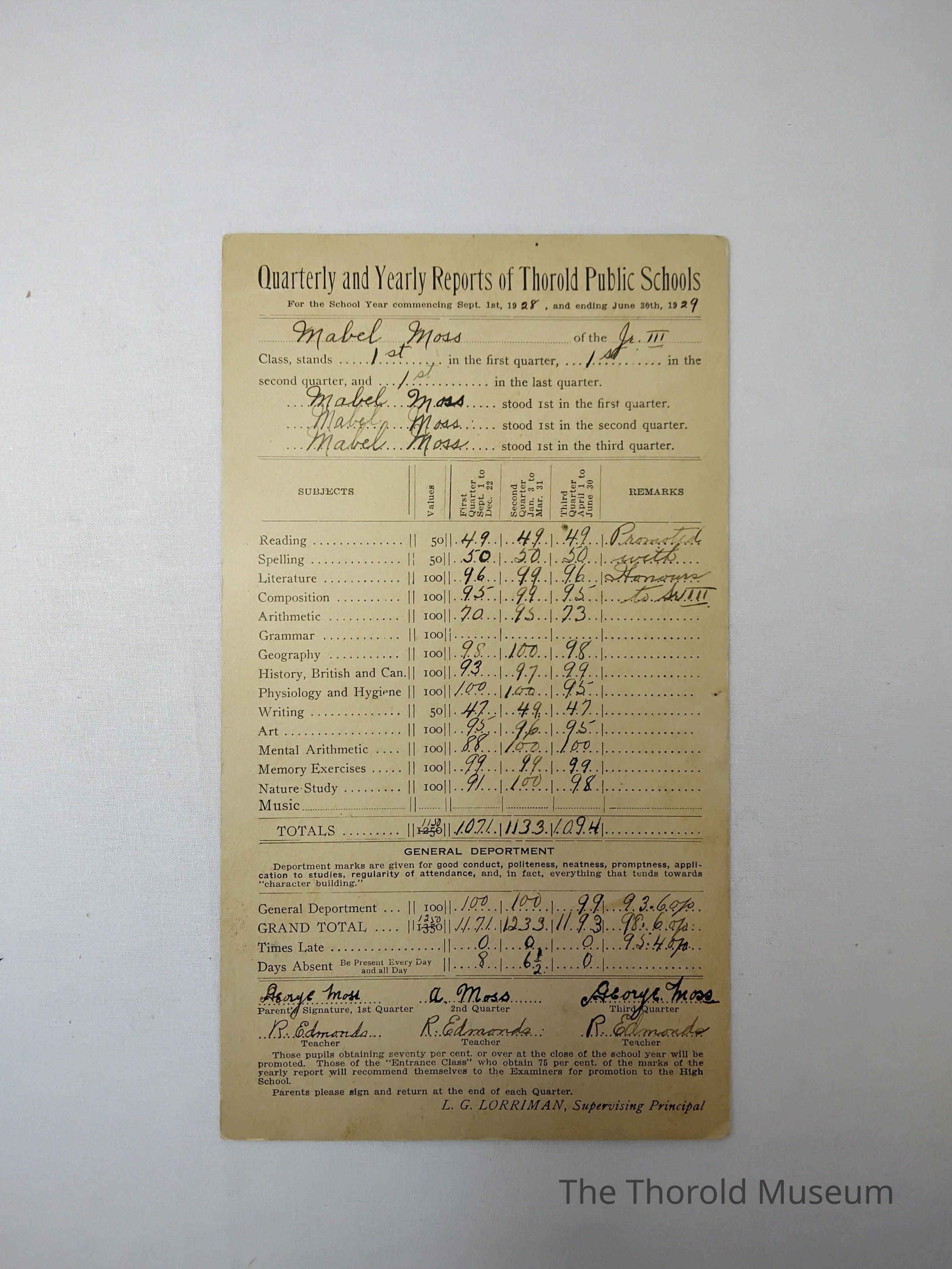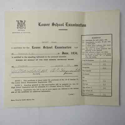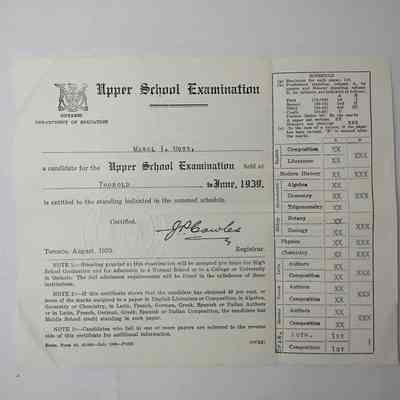 Report Cards 1928 to 1939Entry/Object ID