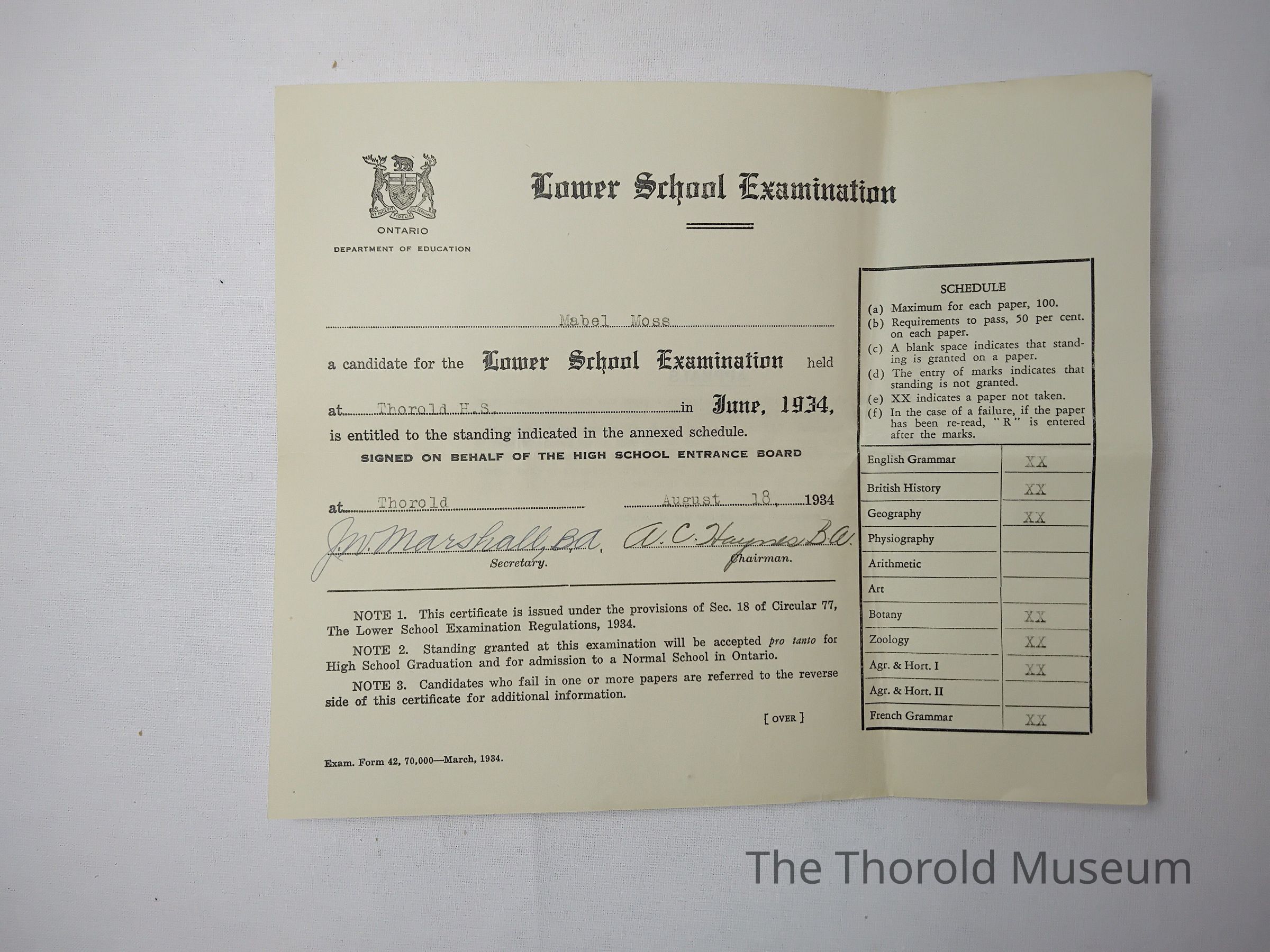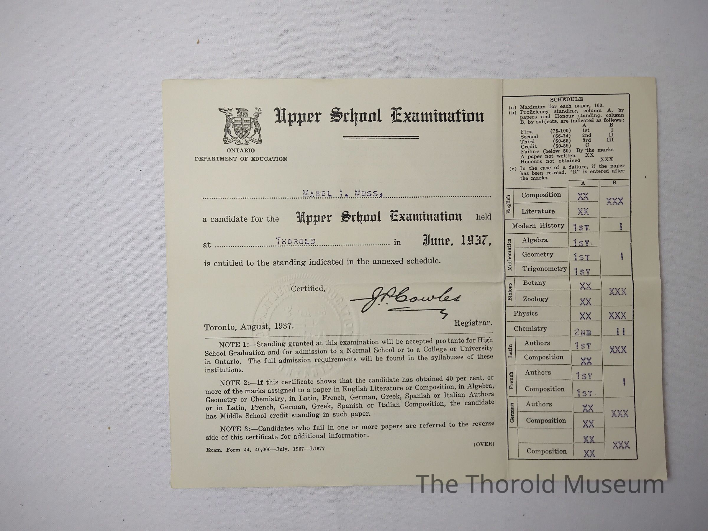 F) June 1936, upper school examination