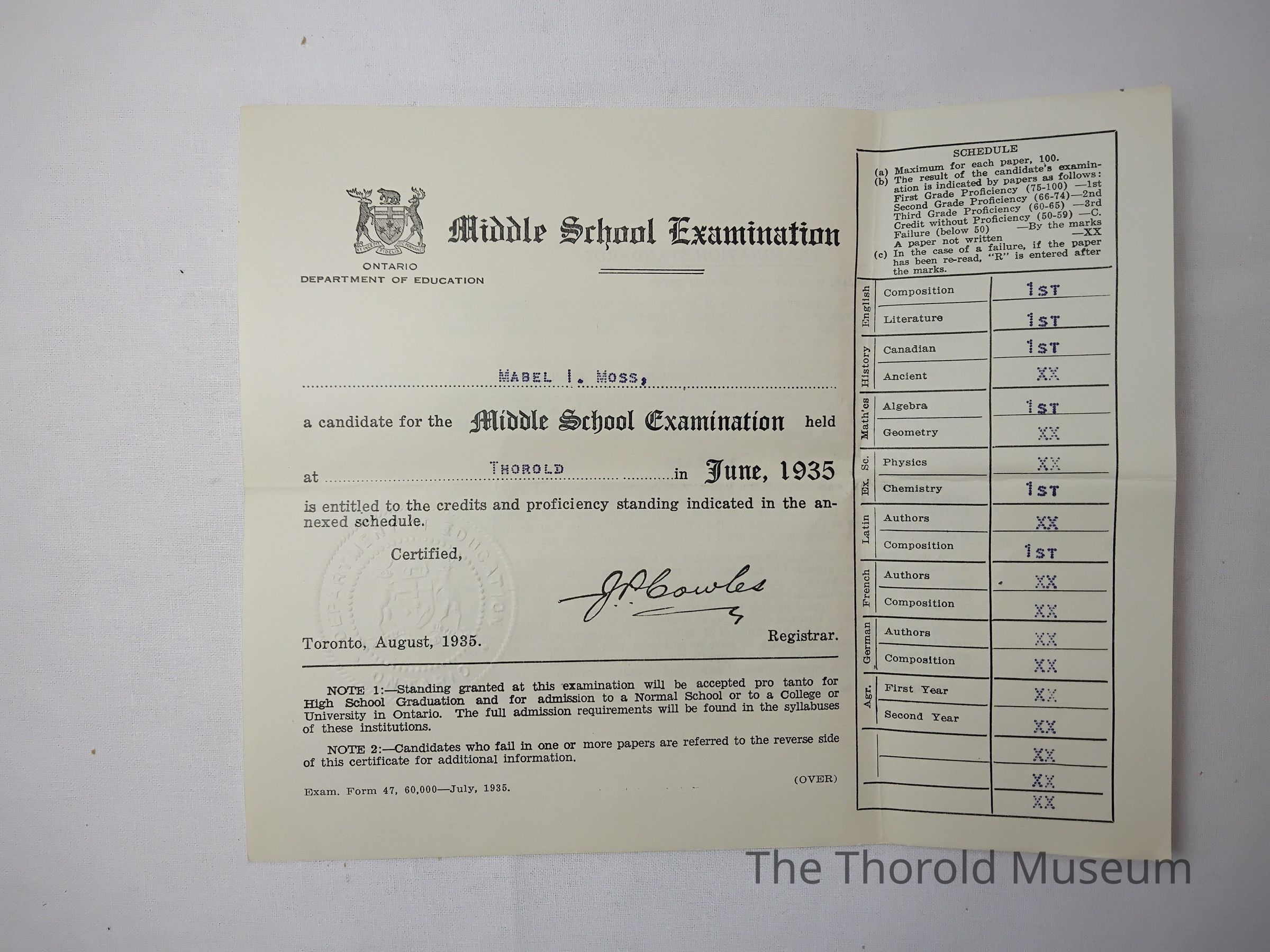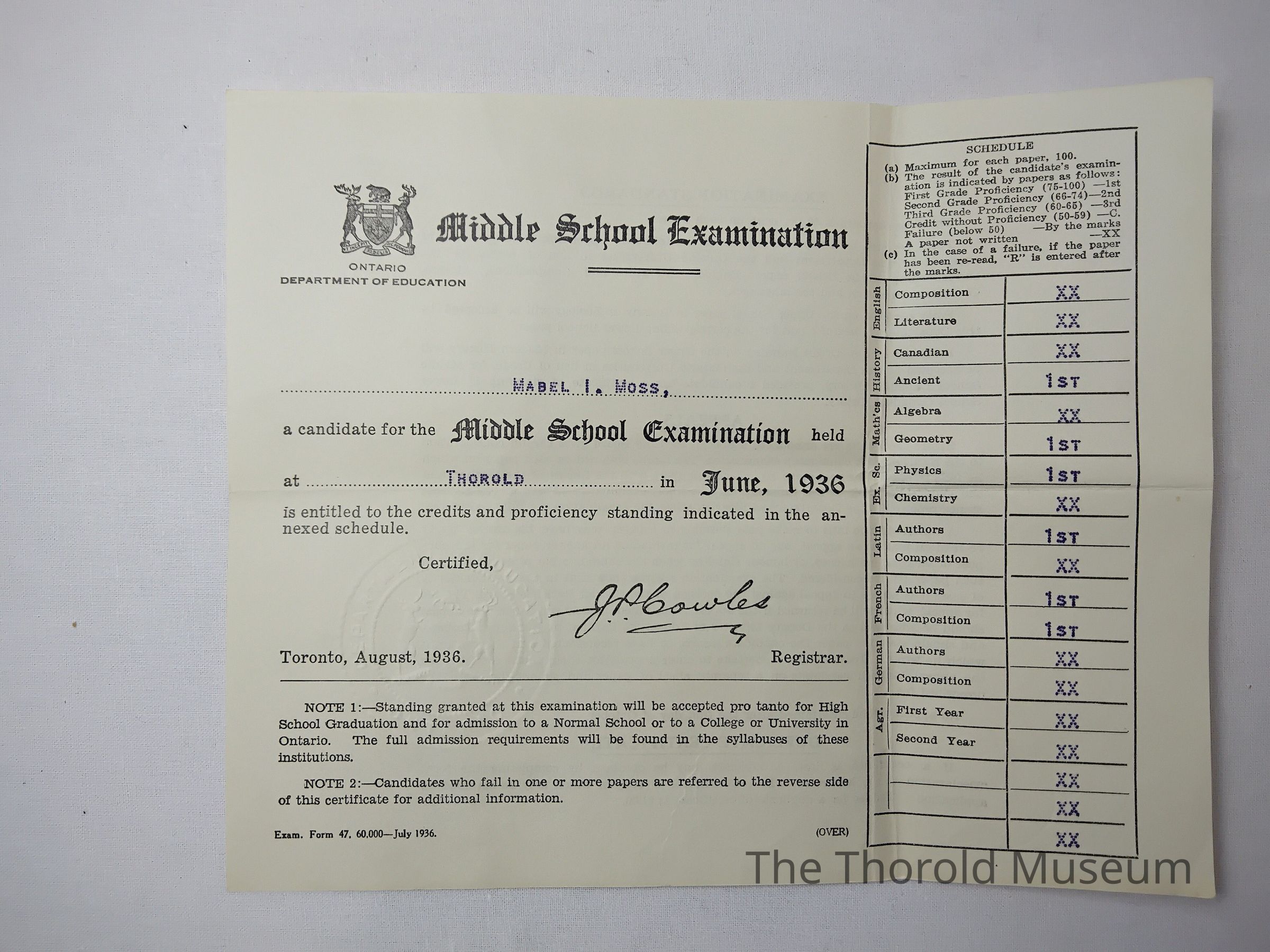 G) June 1936, middle school examination