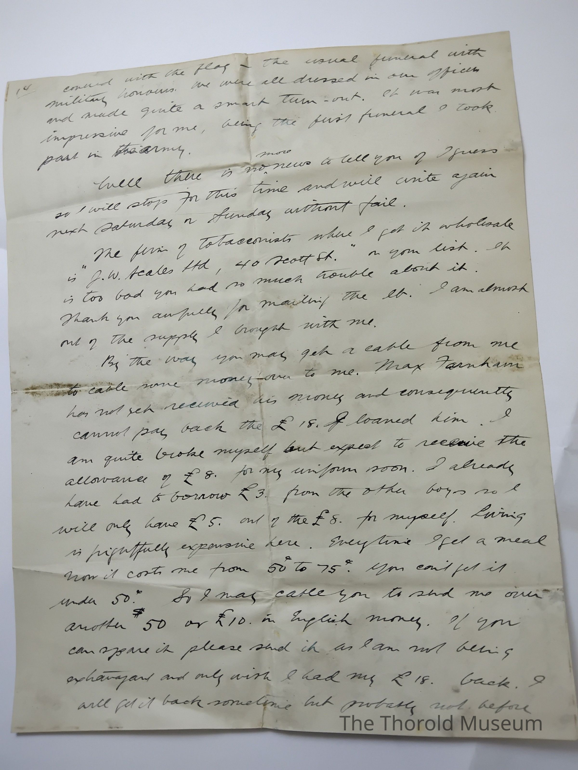 Last Wednesday there was the funeral of a Cadel who died from ad[??????]; de[???????] Or something like that. We all marched behind the coffin which was on a gun cariage covered with the fleas - the usual funeral with maililans honour, we were all dressed in our offices and made and made quite a stuant turnout. It was [????] Impre[?????] For me, being the [????] Funeral I took part in the army.