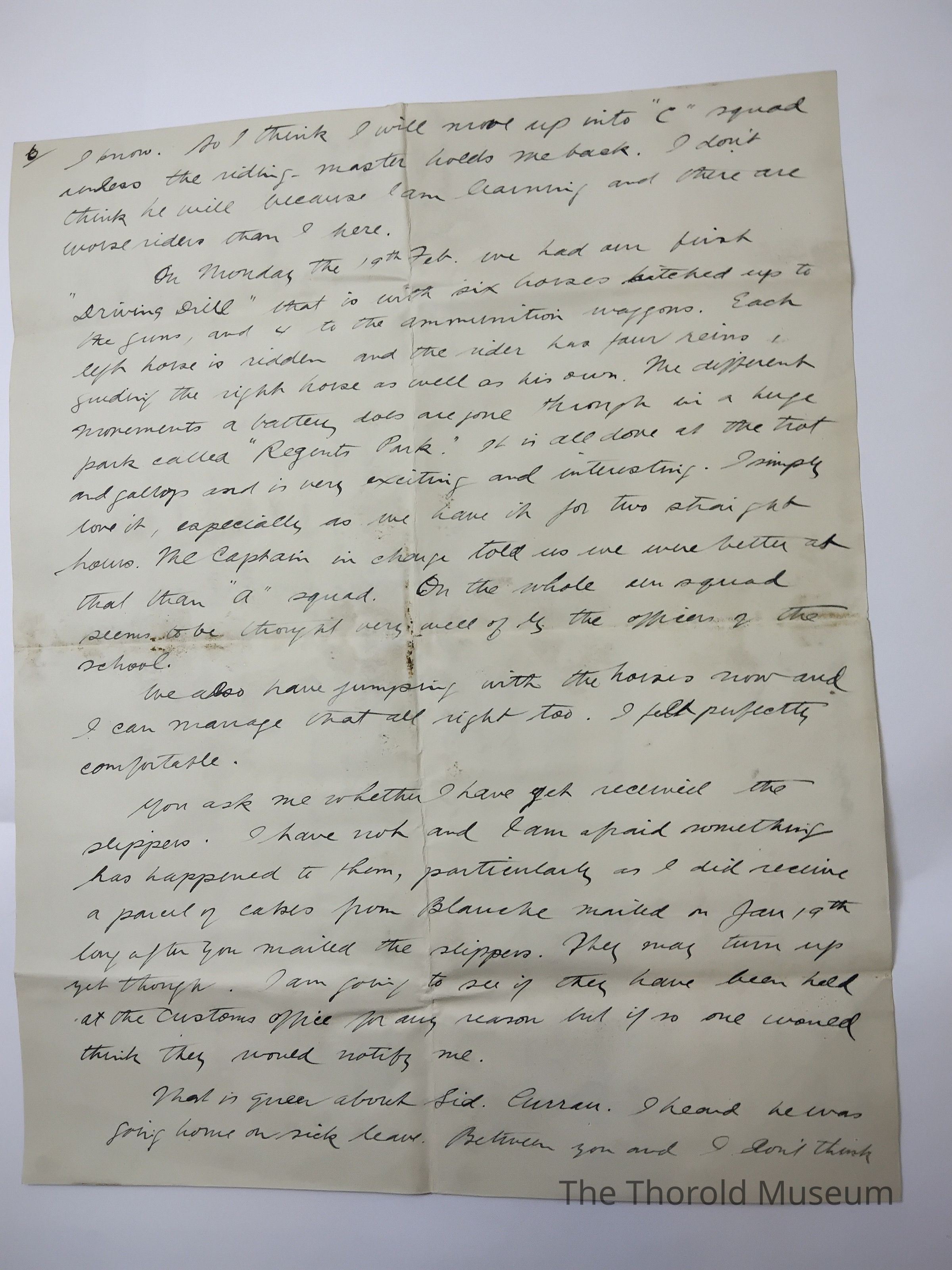 On Monday the 19th Feb, we had [???] [????] "[?????]ing Drill" that is with [???] [?????]s hitched up to the gun, and 4 to the ammunition weapons. Each [????] Have is hidden and the [?]ides has [????] [?]eino, [????????] The [?????] Ho[?]se as well as his own. [???] Different [???????]ts a [??]tters days are gone [???????] In a huge pack called "Regeuth Pack." It is all done at the that and [?]all[??]s and it was exciting and inte[??]t[??]s. [???????] Love it, especially as we have it for two [????????] How. The captain in charge told us we were better at that than "A" squad. On the whole our squad seems to be thought [????] Well of is the [?????] Of the school