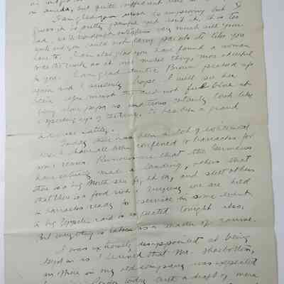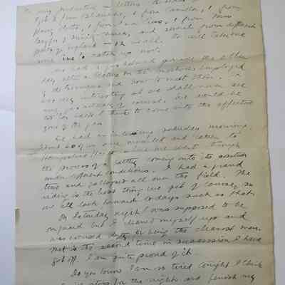 I am glad your wrist is [??????????] But I guess it is pretty painful yet isint it. It is too bad, as it [??] [?????] [??????????] Very much with your work and you could not carry pannels etc like you have to. I am also glad you have found a women to do the work as it will make things more cheerful for you. I am glad auntie Brown packed up again and I certainly hope I will see her again. You must try and not feel blue at being alone papa as conditions certainly look like a speeding up of the war. It has been a grand [????????] Lately.