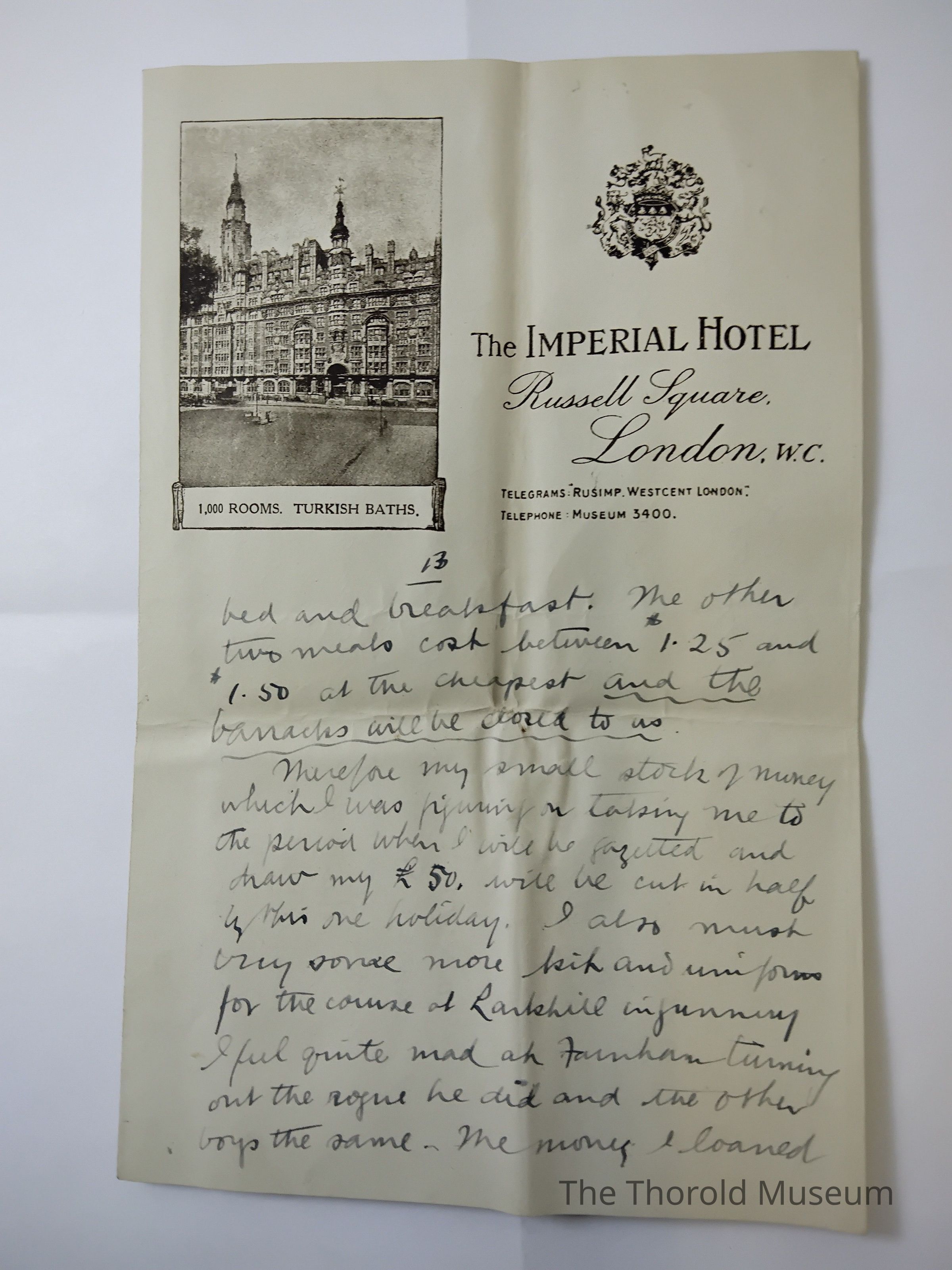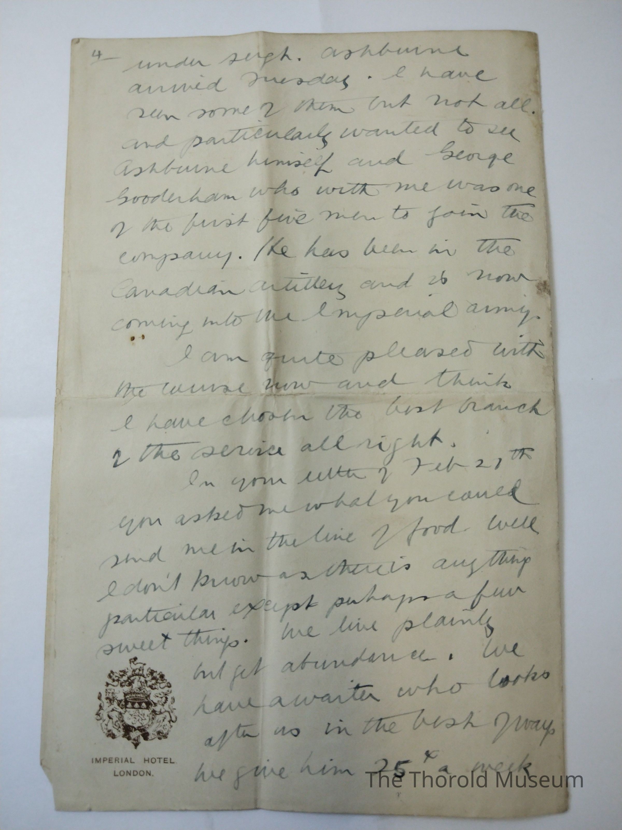 I was extently disappointed at being kept in as I learned that Mr. Sha[??????], and others in my odd company was expected to arrive in London today with a draft of men for the [???????] And service.a pants of 30 men nder Seph. As [??????] Arrived Tuesday. I have seen some of them but not all, and particularly wanted to see [?????????] Himself and George Goodenham, who with me was one of the first fve men to join the company. He has been in the Canadain artillery and is now coming into our imperial army.