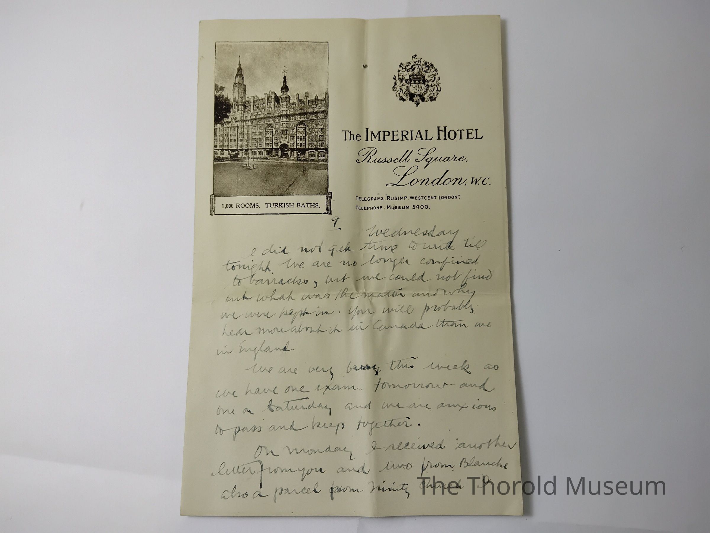 I did not get time to write til tonight, we are no longer confined to barracks, but we could not find out what was the matter and why we were kept in. You will porbally hear more about it in Canada than we in England.