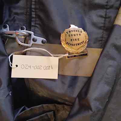 An old fireman's uniform, belonged to Harvey and/or Thomas (Tom) Wade