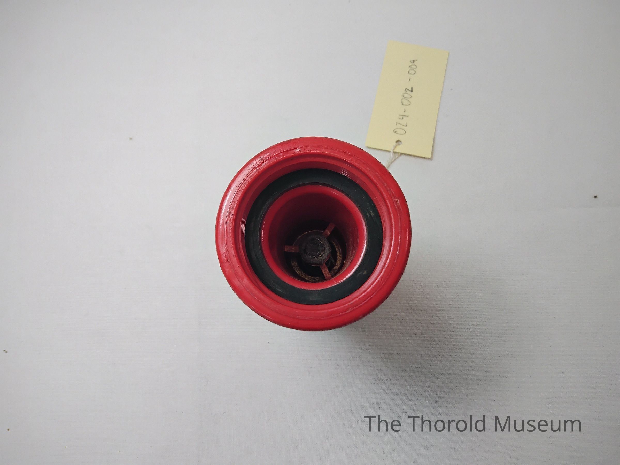 Plastic red hose nozzle with rubber edgesCataloged By