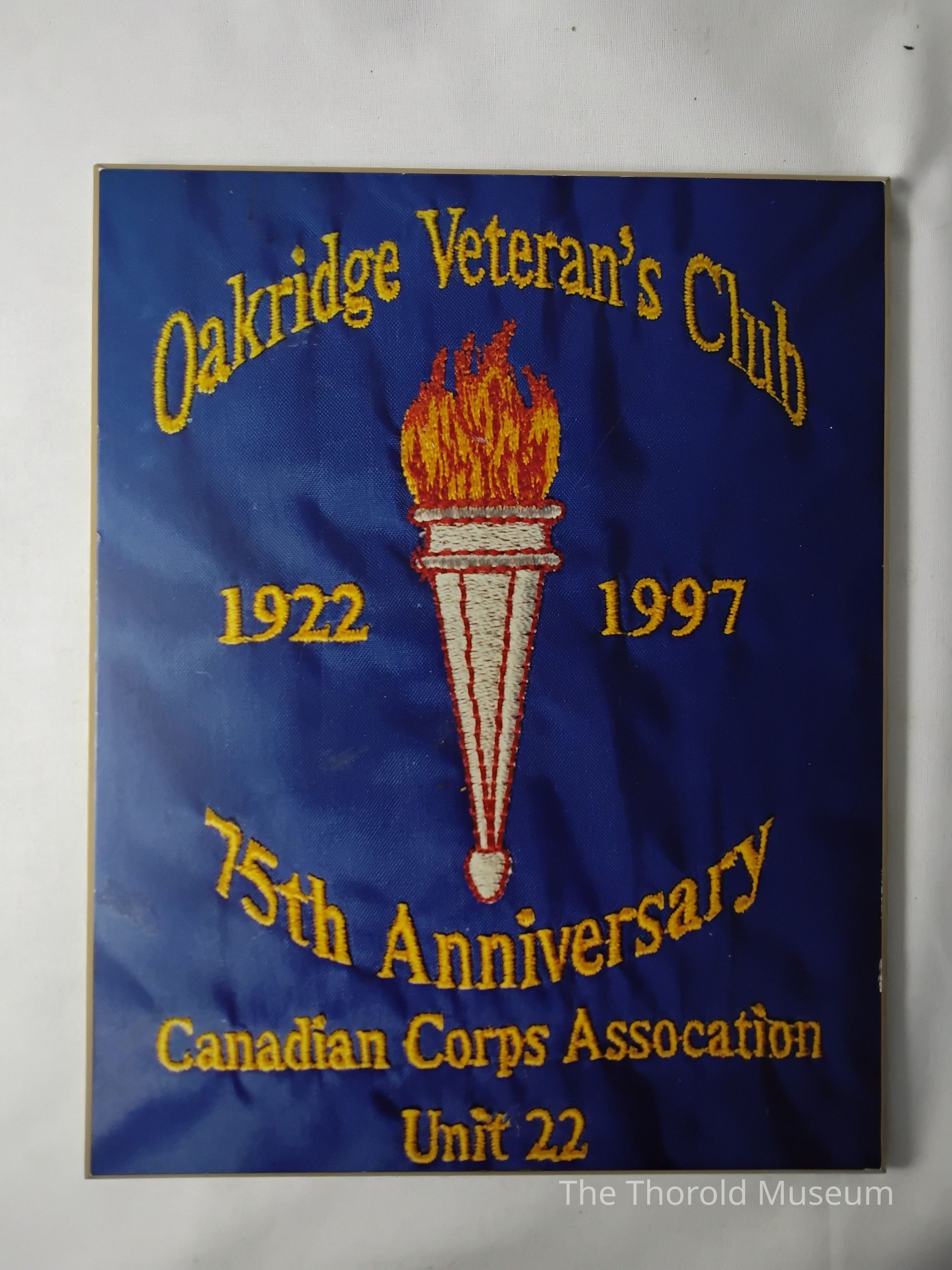 Directly underneath the torch design on the front of the plaqueTranscription