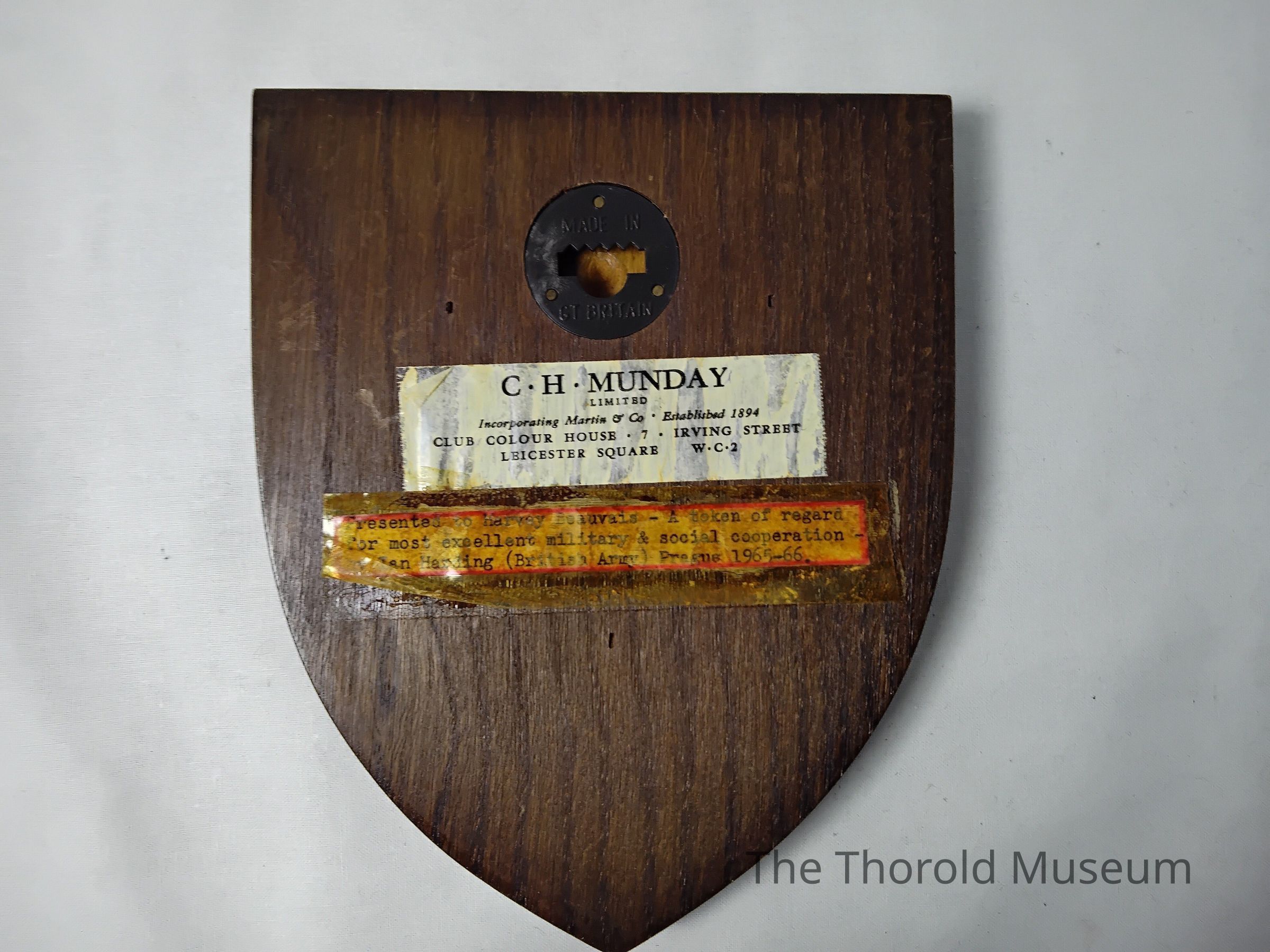 On the ribbon design underneath the bird on the front of the plaqueTranscription