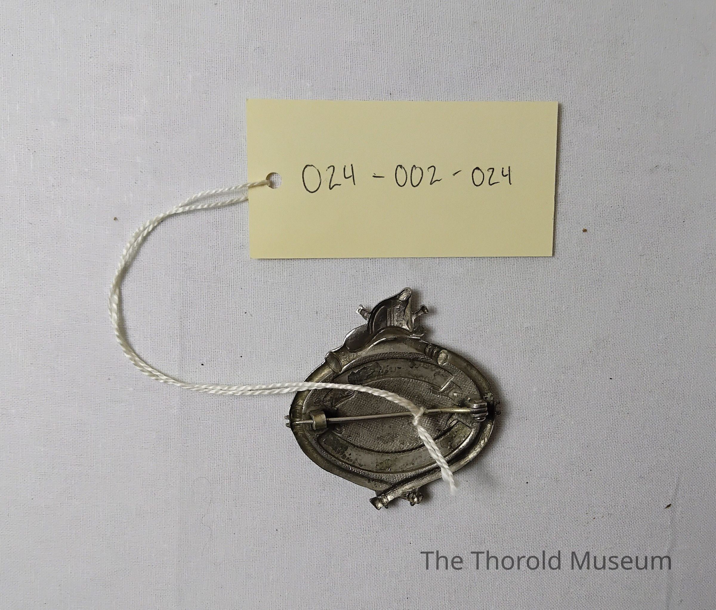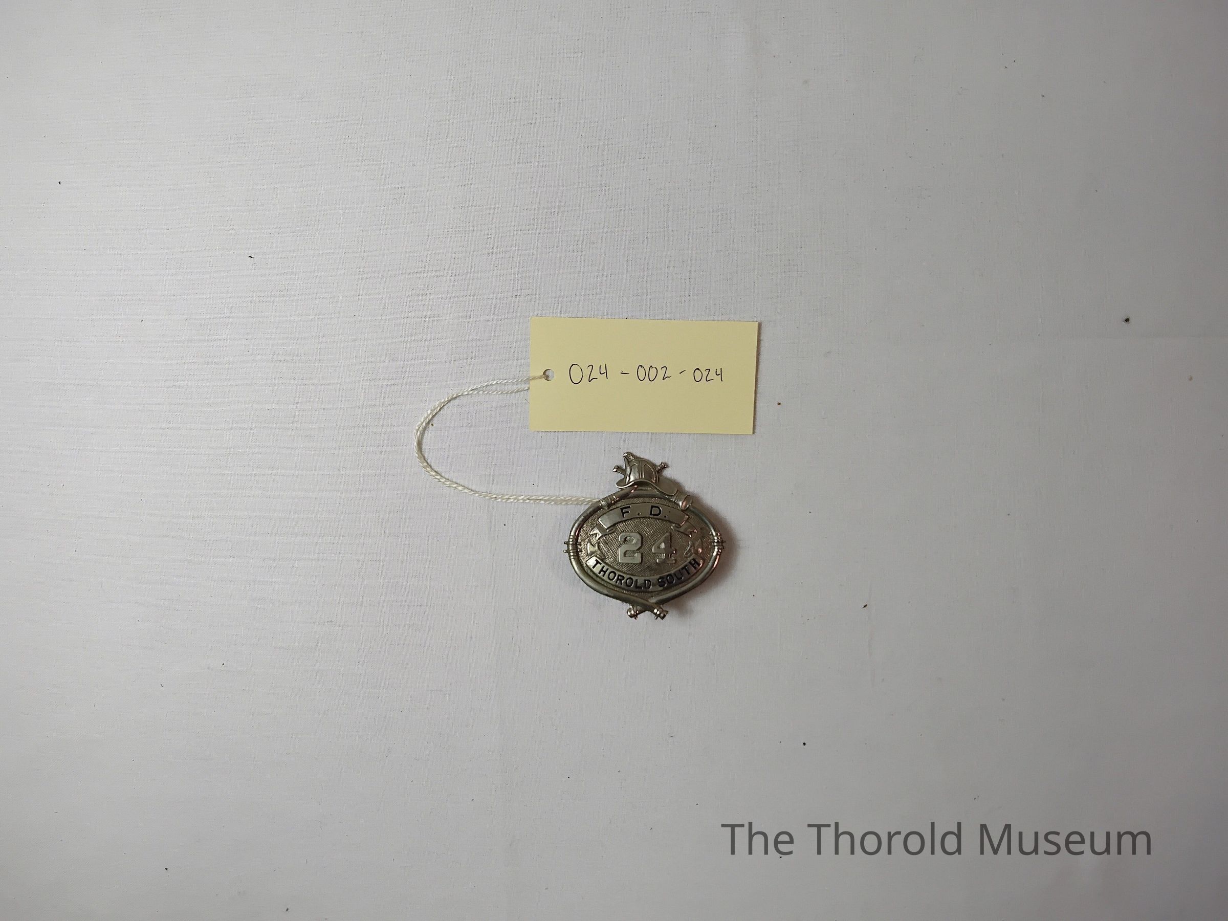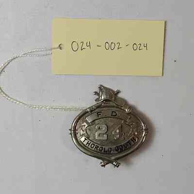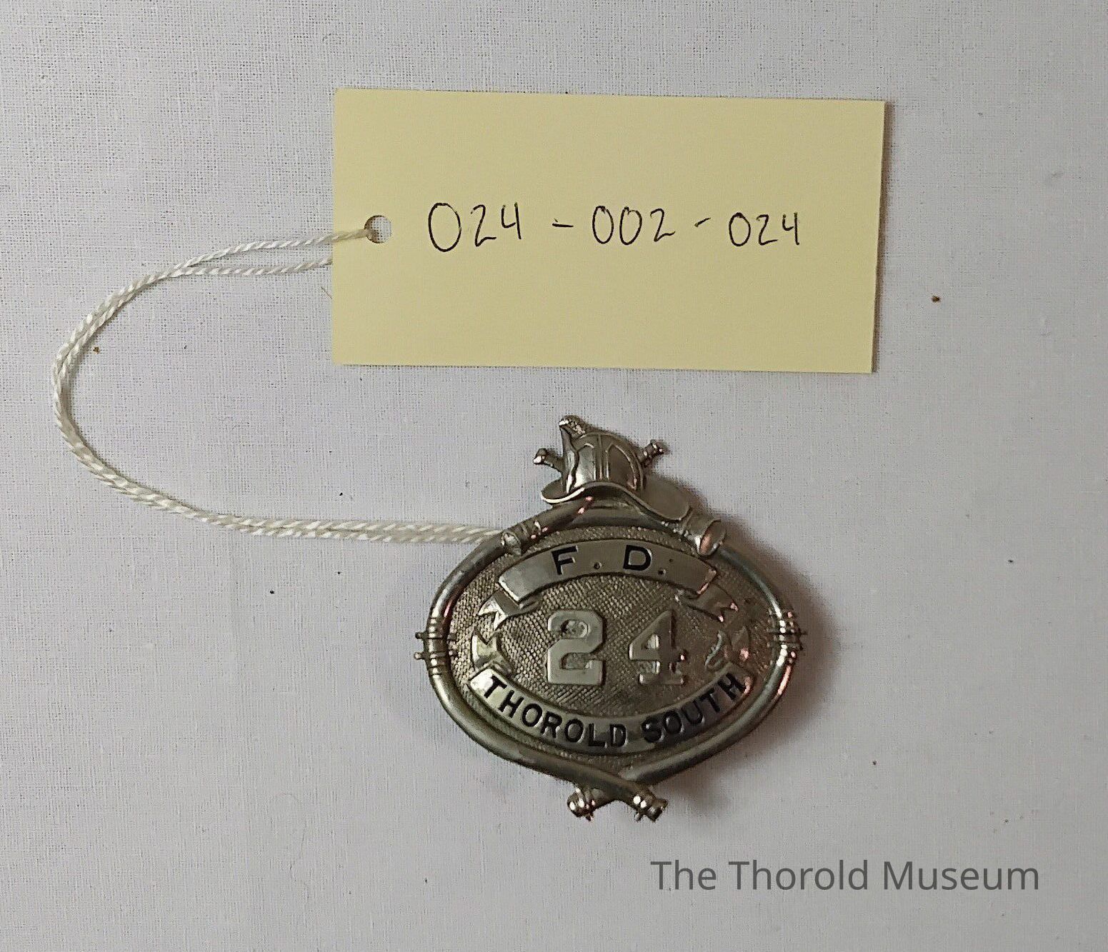 A silver badge from the TSFD with a 24 on itCataloged By