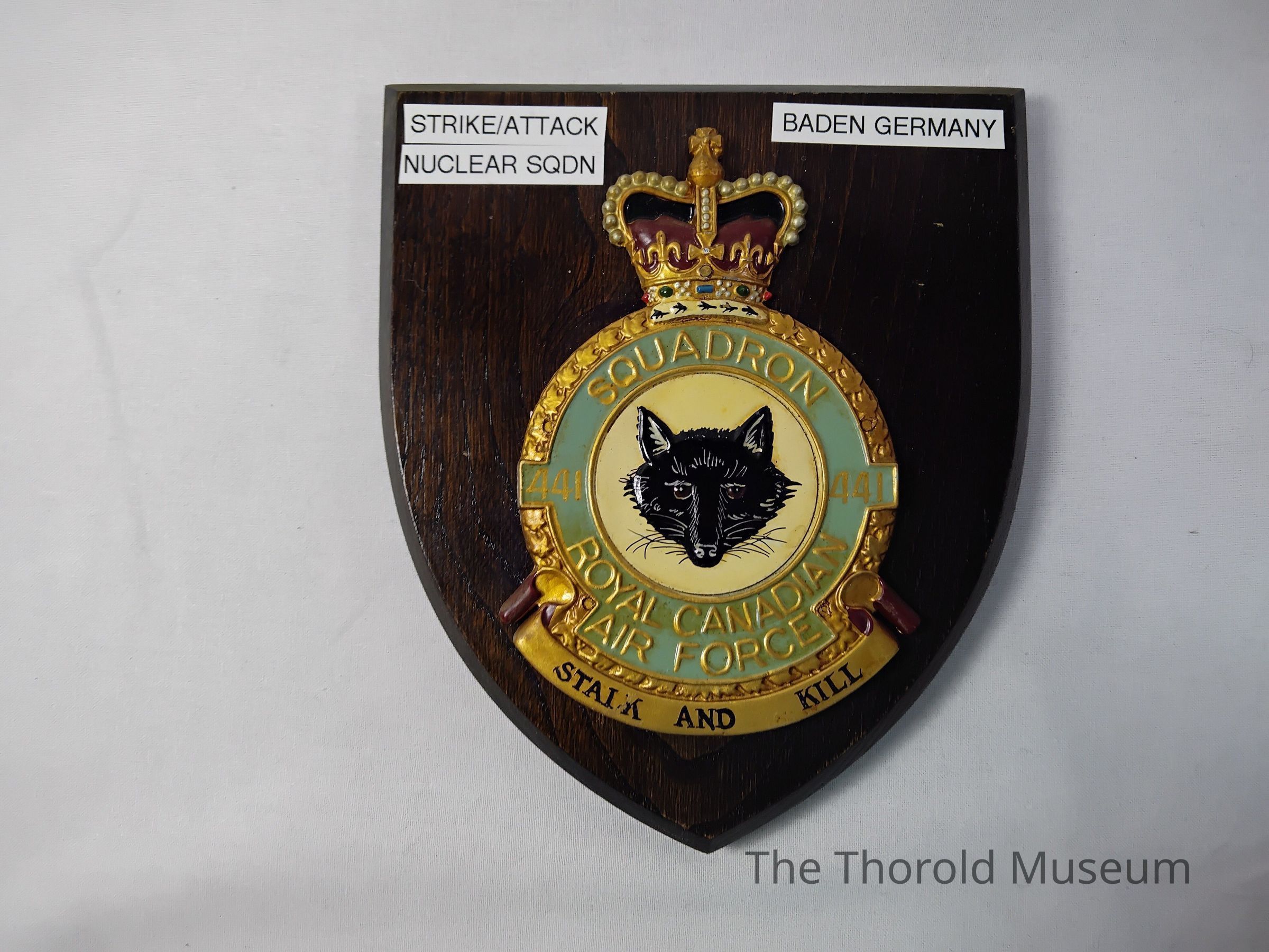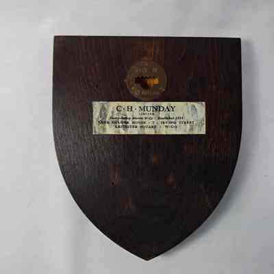 Towards the bottom of the plaque on the front, on the ribbon designTranscription