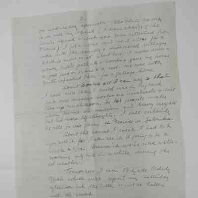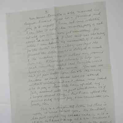 This is a disjointed letter but there is really no news to tell you. The landlady has just brought my cocoa cake in + it is 10PM as I have to be up at 6AM tomorrow I will go to bed early.