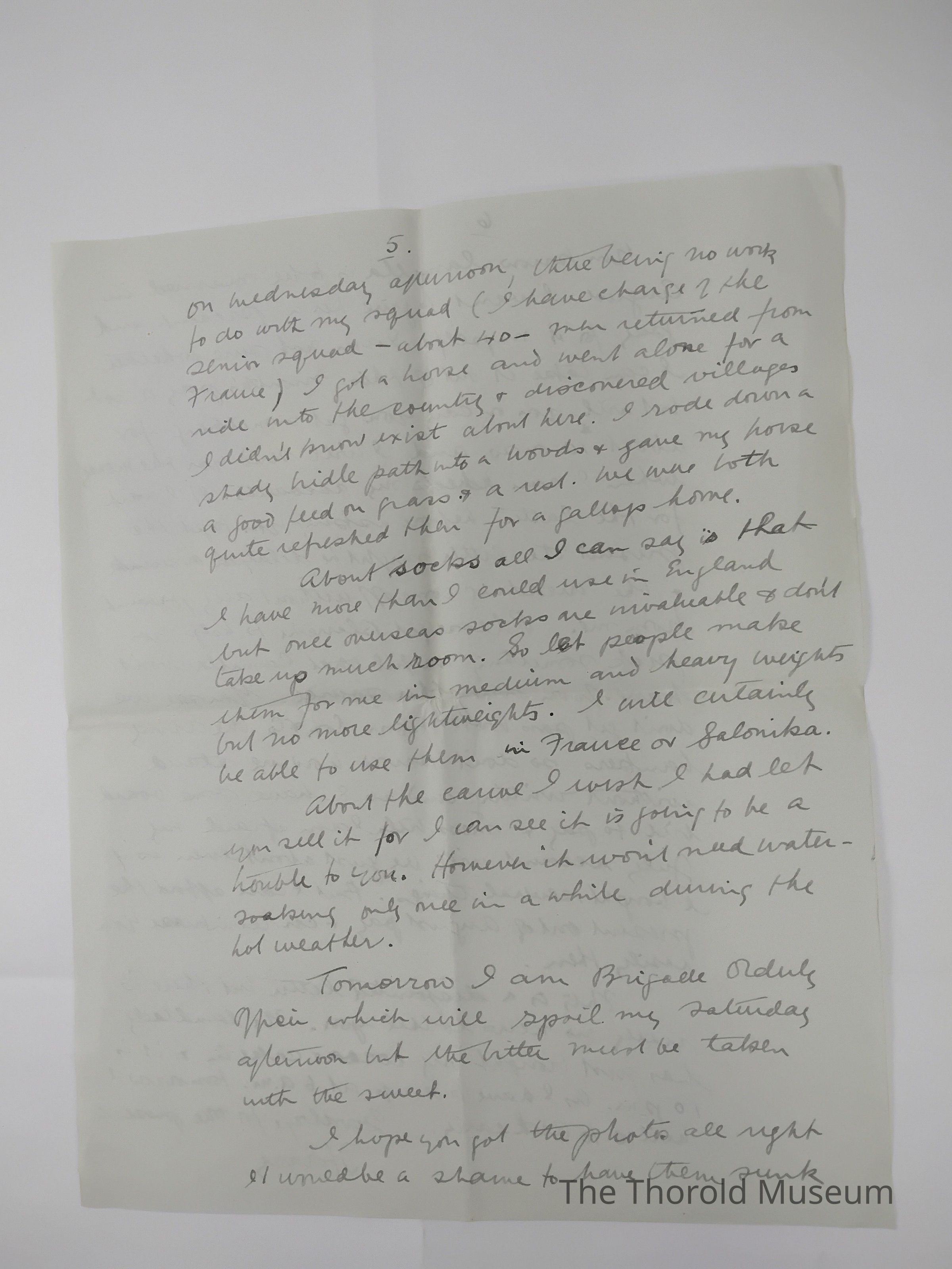 About socks all I can say is that I have more then I could use in England but once overseas socks are invaluable & don't take up much room. So let people make them for me in medium and heavy weights but no more light weights. I will certainly be able to use them in France or Salonika.