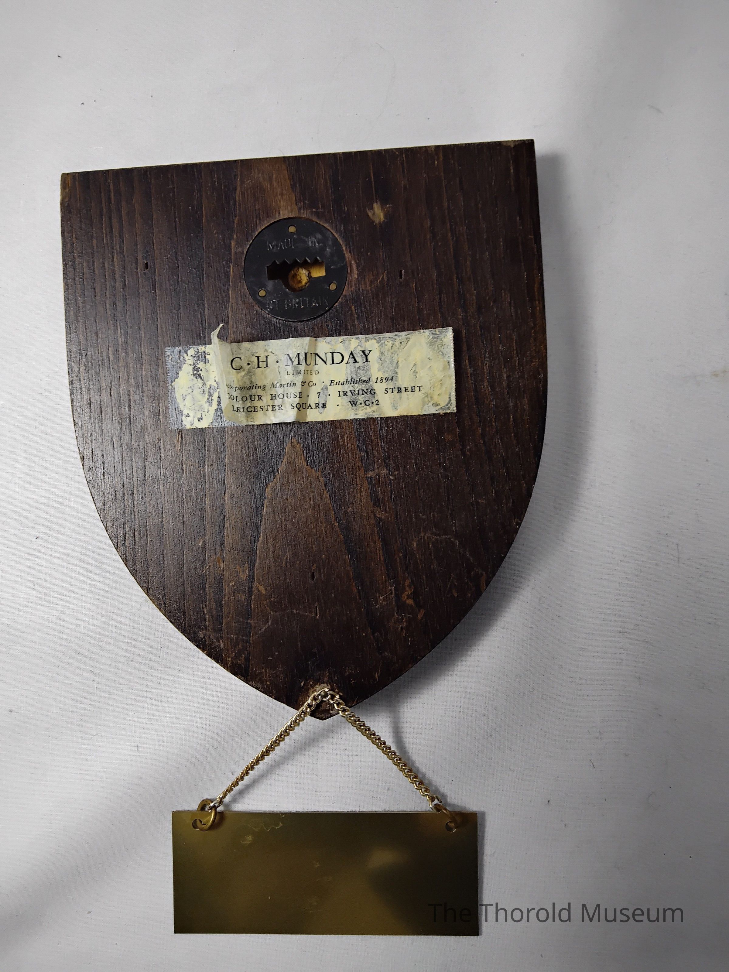 Towards the middle of the plaque on the front, underneath the animal designTranscription