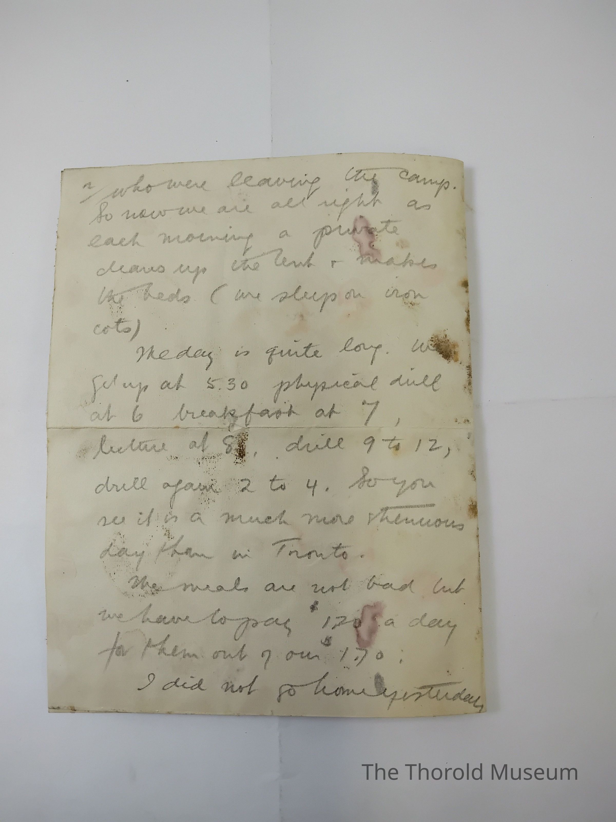 The day is quite long, we get up at 5:30, physical drill at 6, breakfast at 7, lecture at 8, drill 9 to 12, dill again 2 to 4. So you see it is a much more treacherous day than in Toronto.