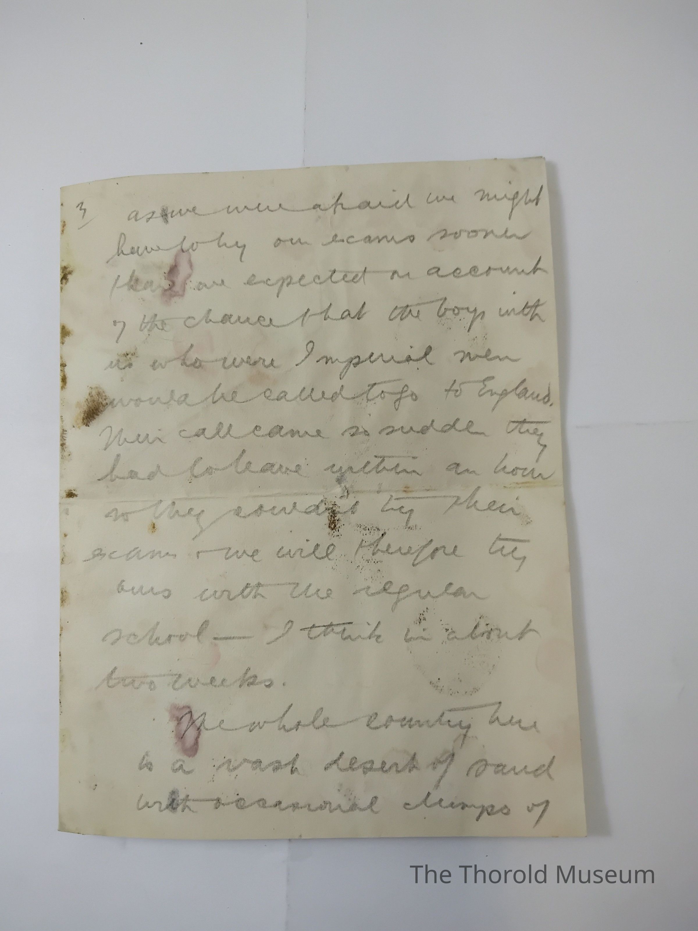 I did not go home yesterday as we were afraid we might have to try our exams sooner than are expected on account of the chance that the boys with us who were imperial men would be called to go to England. Their call came so sudden they had to leave within an hour so they couldn't try their exam, we will therefore try ours with the regular school - I think in about two weeks.