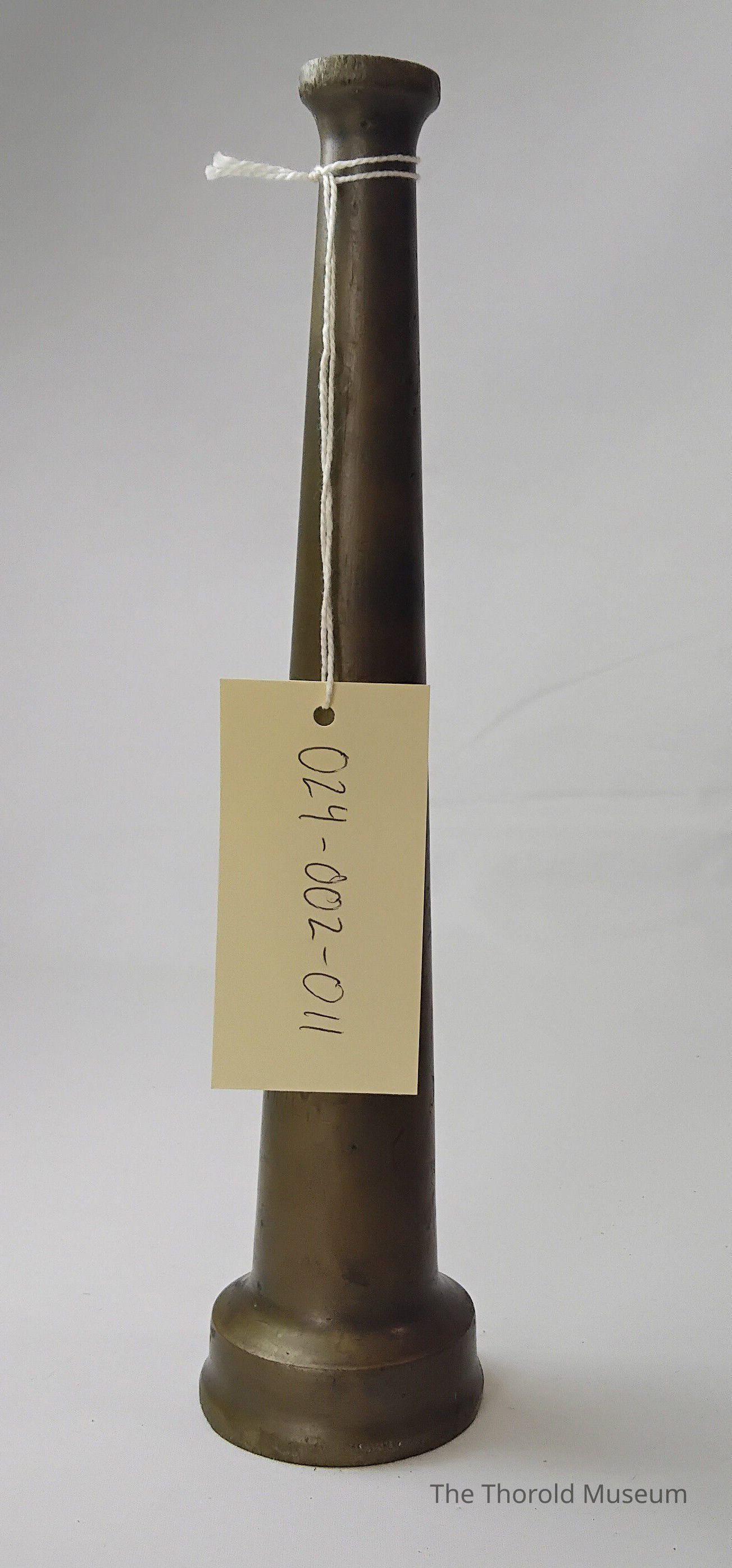 Long solid metal fire nose nozzle, some dentsCataloged By