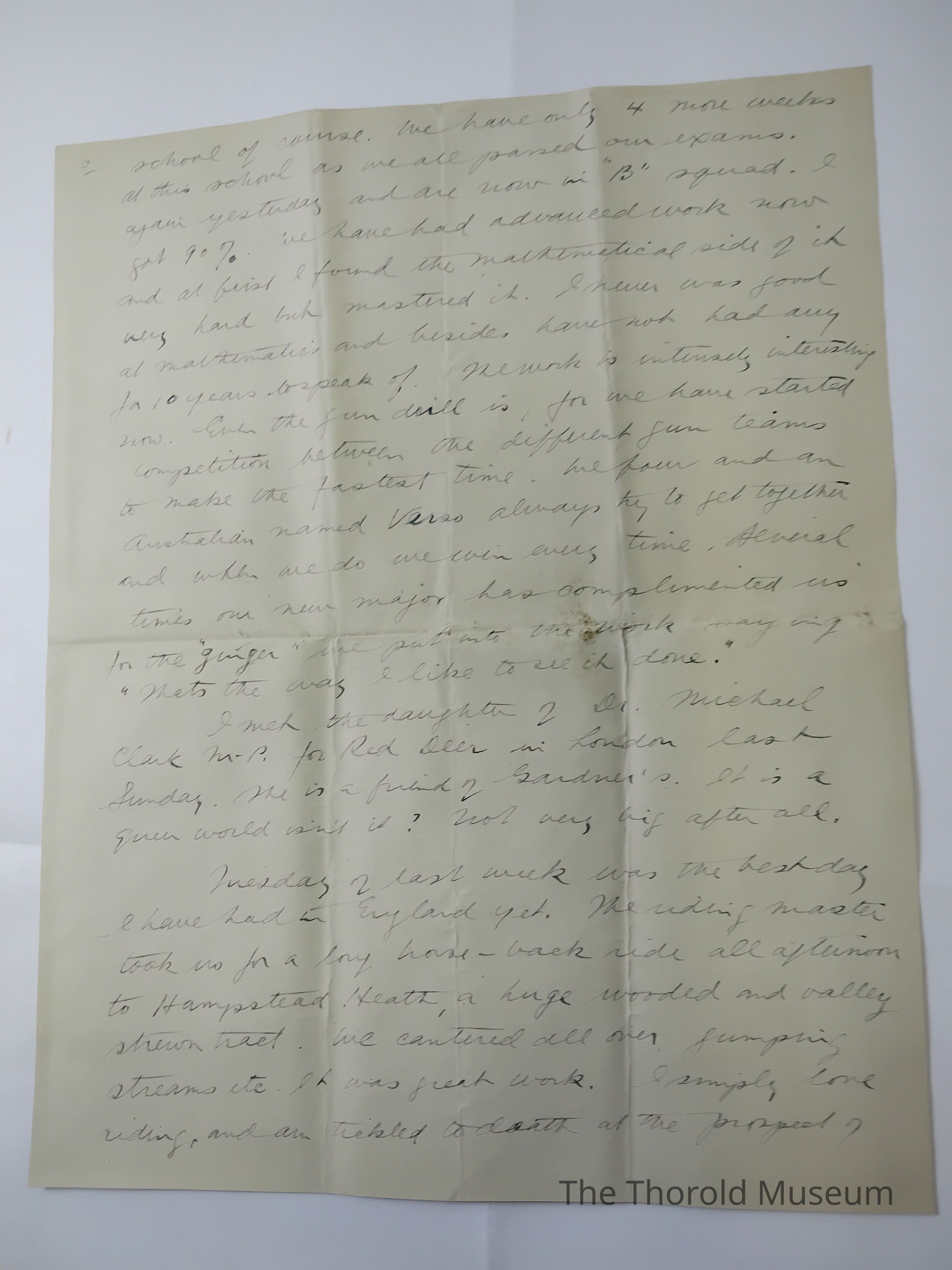 Tuesday of last week was the best day I have had in England yet. The [??????] Master took us for a long horse - back ride all afternoon to Hampstead Heath, a huge wooded and valley shewn [?????]. It was great work, I simply love riding, and am tickled to death at the prospect of being mounted.