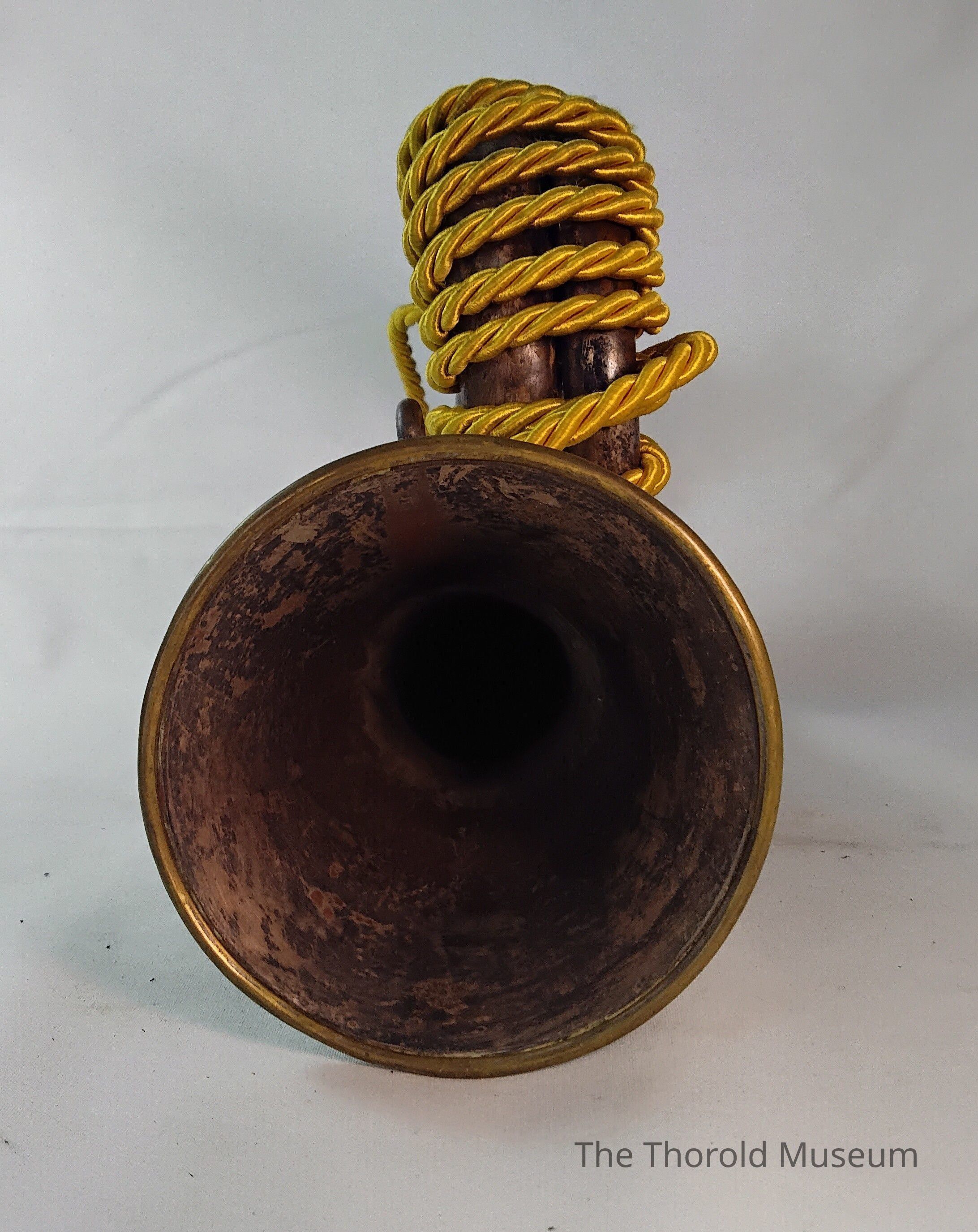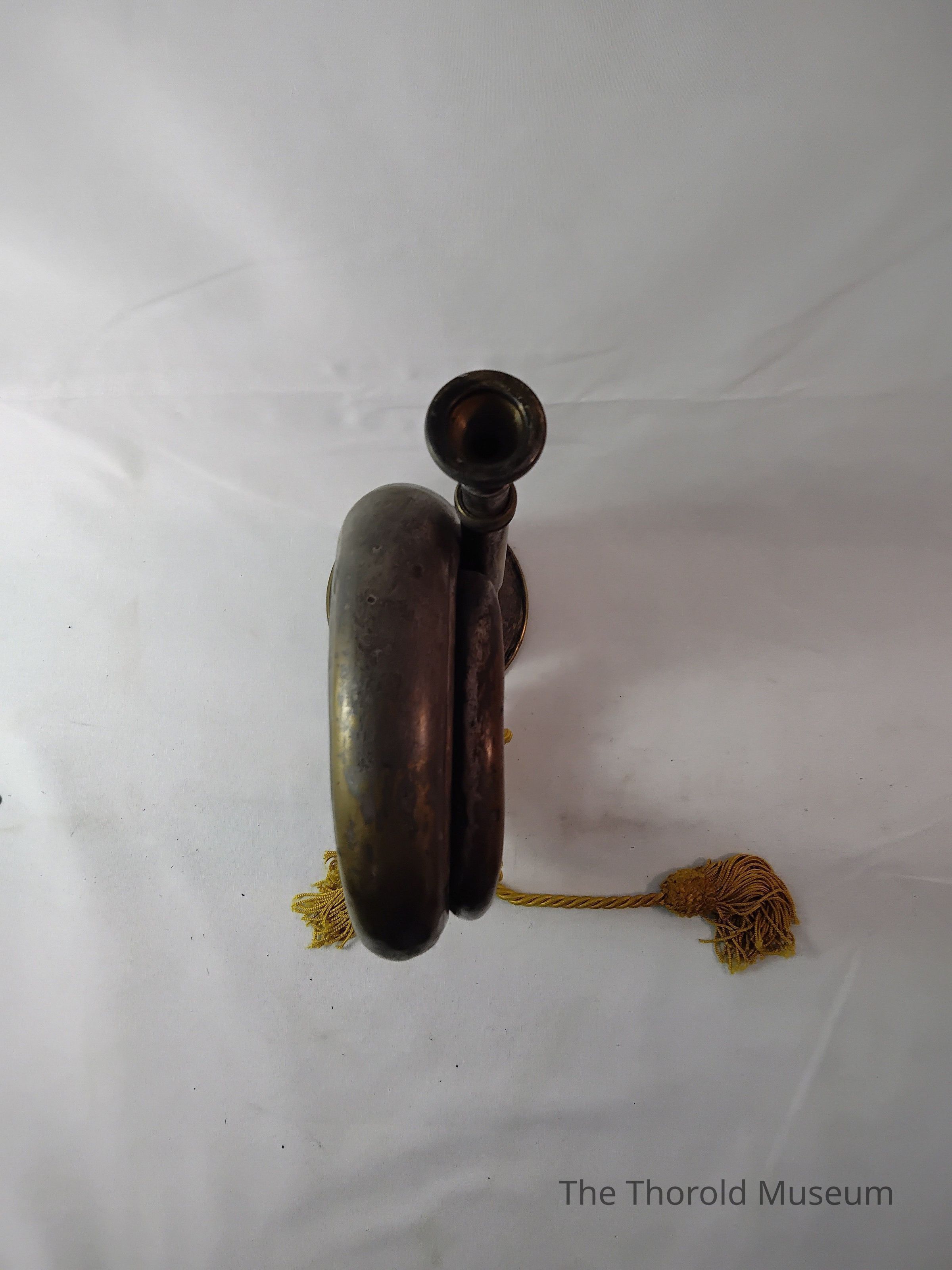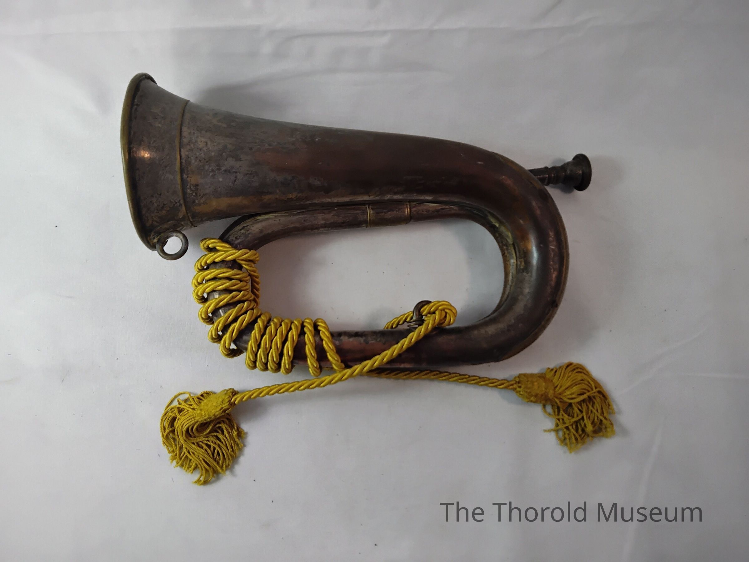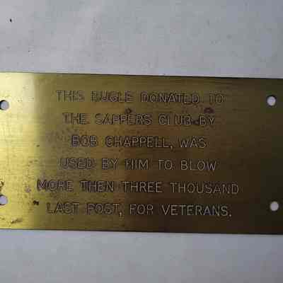 This bugle donated to the sappers club by Bob Chappell, was used by him to blow more then three thousand last post, for veteransLanguage