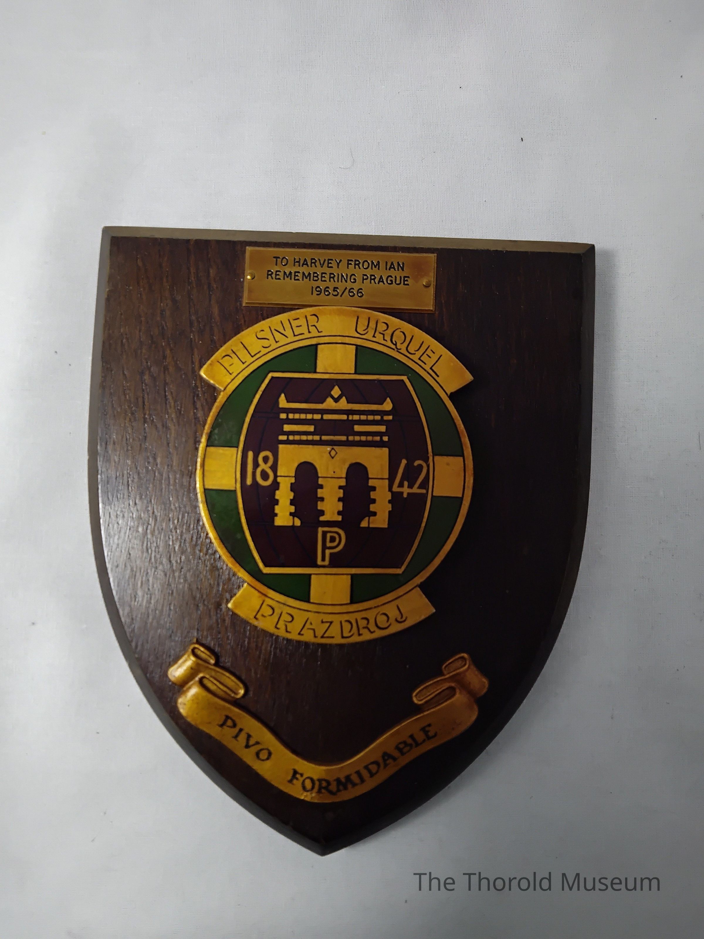 On the golden rectangle towards the top on the front of the plaqueTranscription