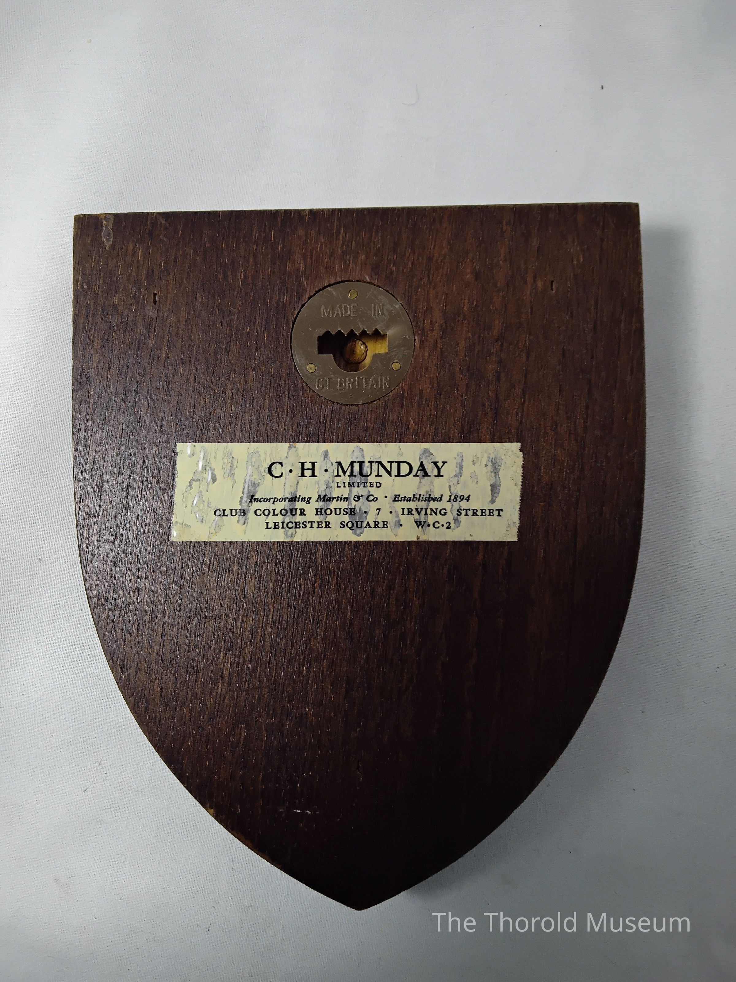 In the middle of the plaque on the front, surrounding the main designTranscription