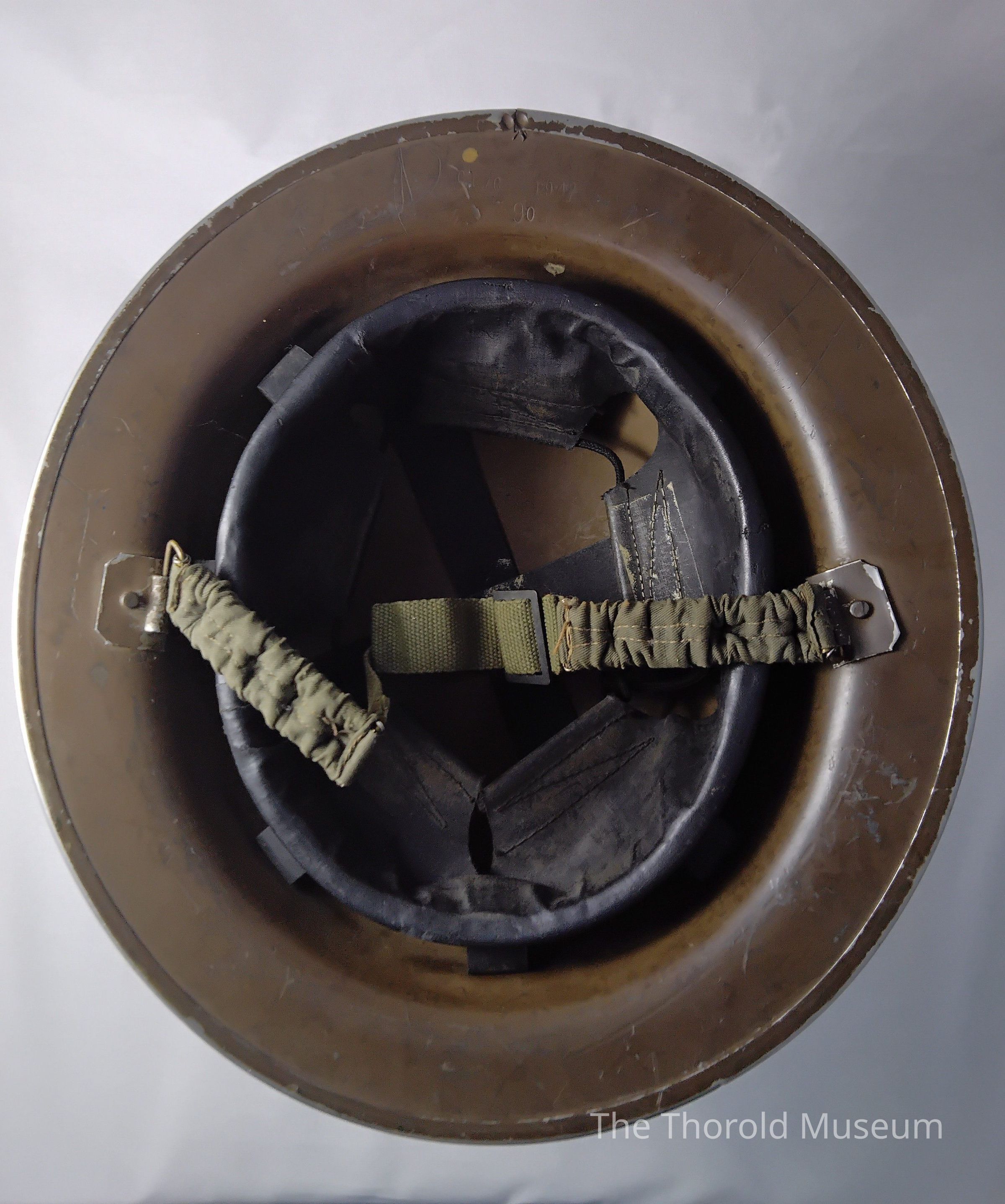 Bottom view of helmet towards the front/back endTranscription