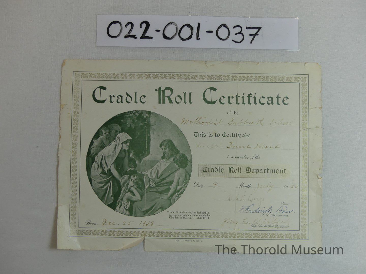 Cradle Roll Cert. Methodist Sabbath SchoolEntry/Object ID