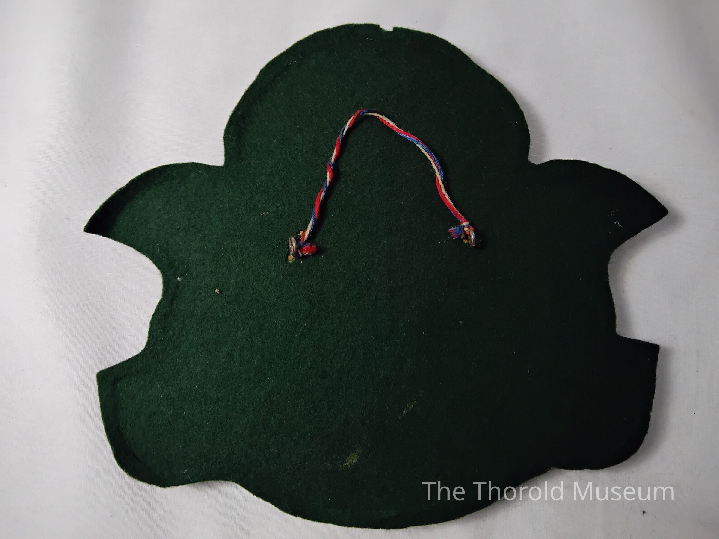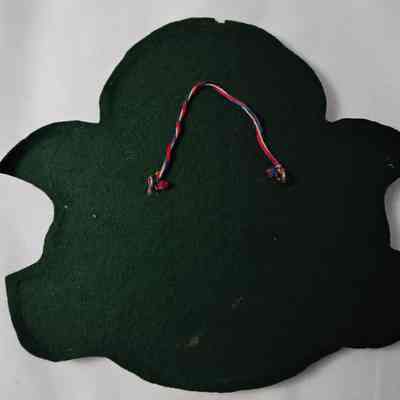 Towards the bottom on the ribbon design that is on the front of the plaqueTranscription