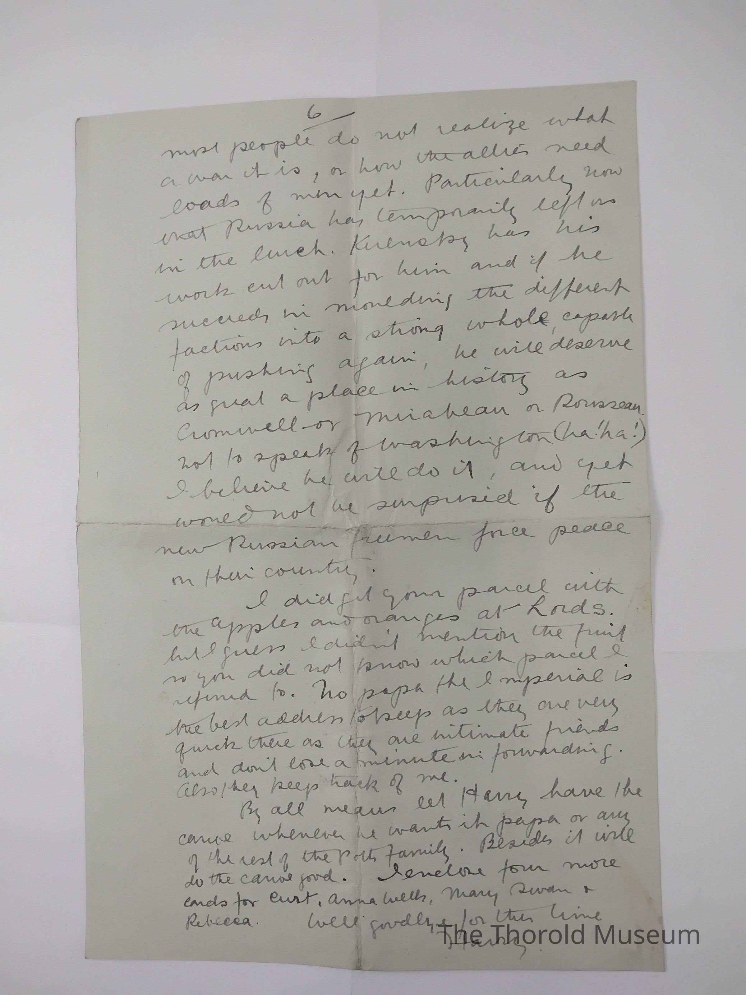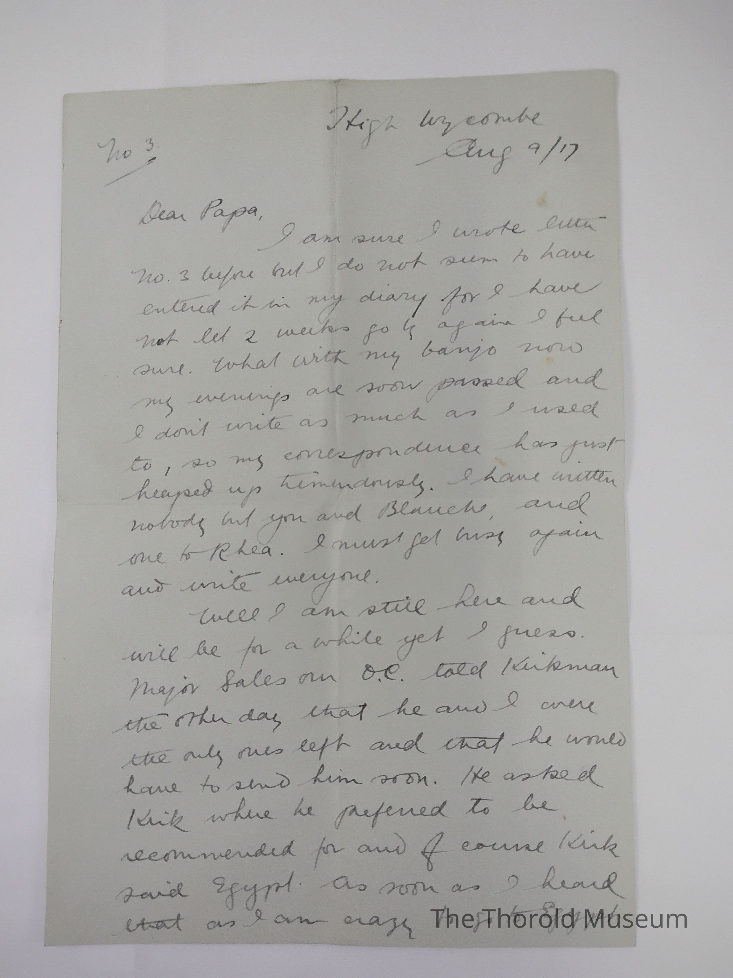 Letter from Harry Anger to his father W.H. Anger - August 9th 1917Entry/Object ID