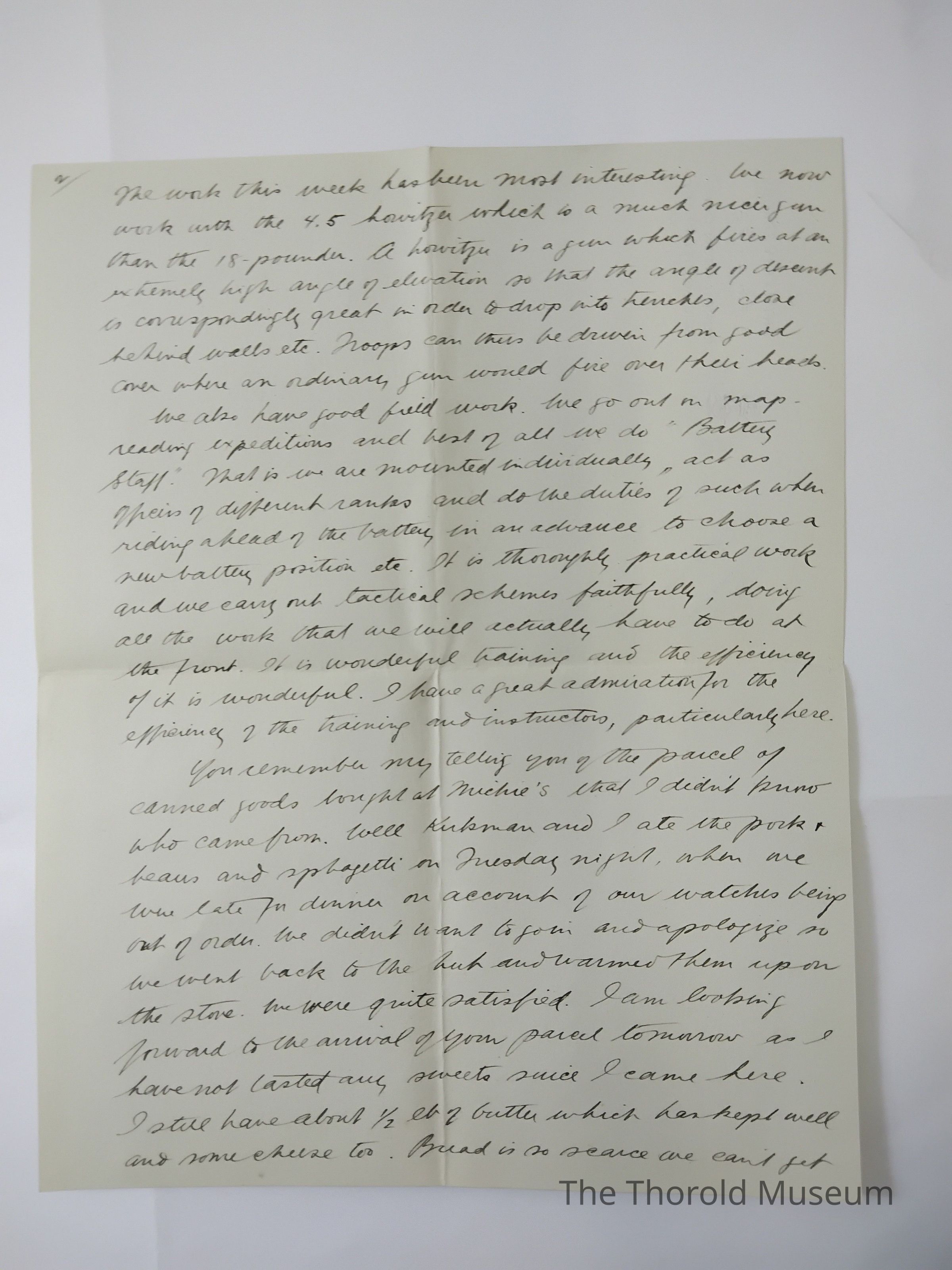 The work this week has been interesting, we now work with the 4.5 [?????????] Which is a much nicer gun than the 18-pounder. A [?????????] Is a gun which fires at an extremely high angle of election so that the angle of [???????] Is [????]splendingly great in order to drop into trenches, close behind walls etc. Troops can [?????] [??] [????????] From good cover where an ordinary gun would fire over their heads.