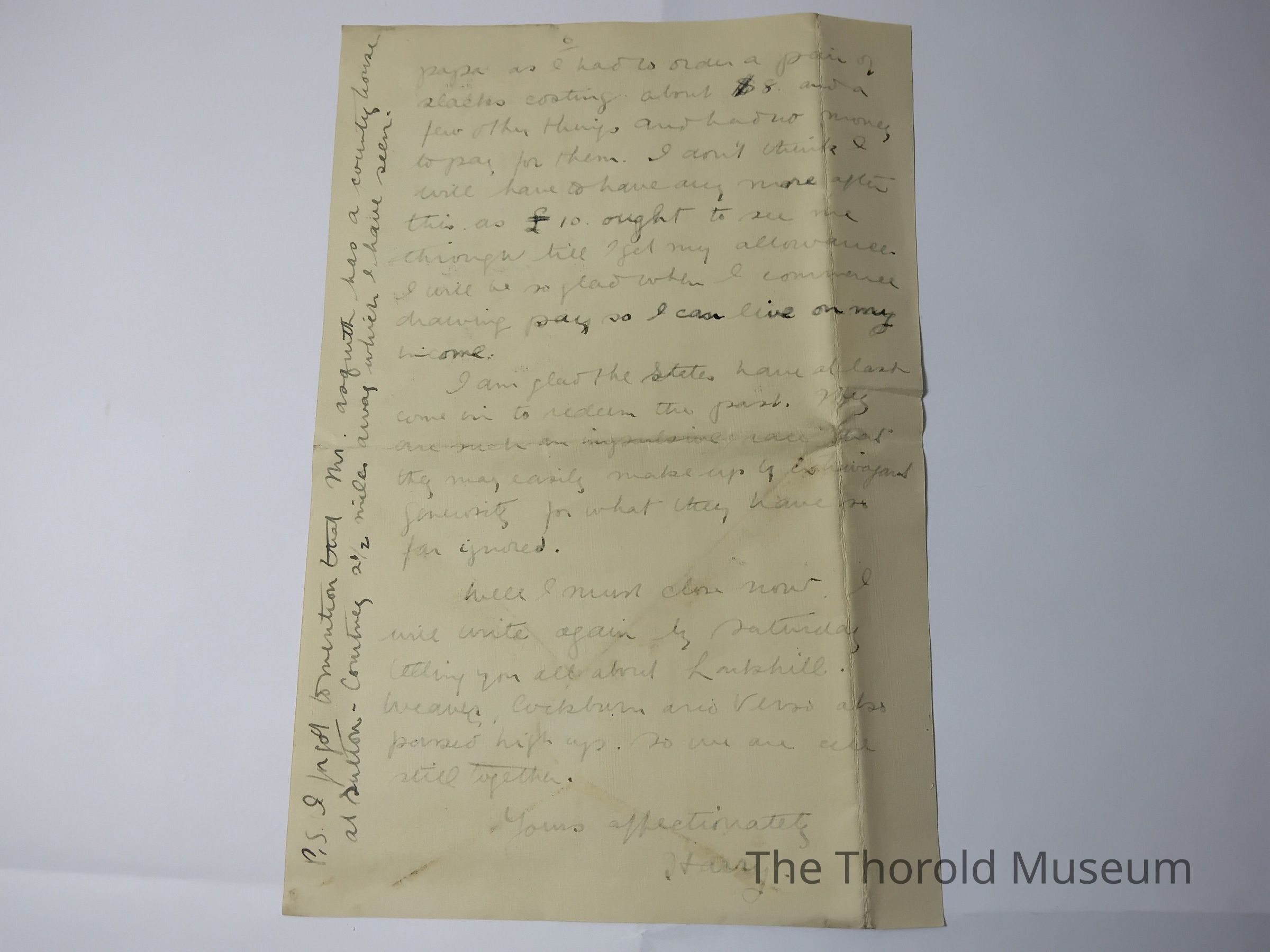 I had to ca[?]le you for some more money last Wednesday Papa as I had to order a pair of slacks costing about $8 and a few other things and had no money to pay for them. I don't think I will have to have any more after this as £10 ought to see me though till I get my allowance. I will be so glad when I commence drawing pay so I can live on my income.