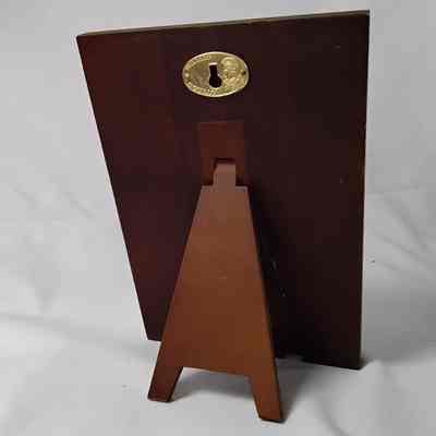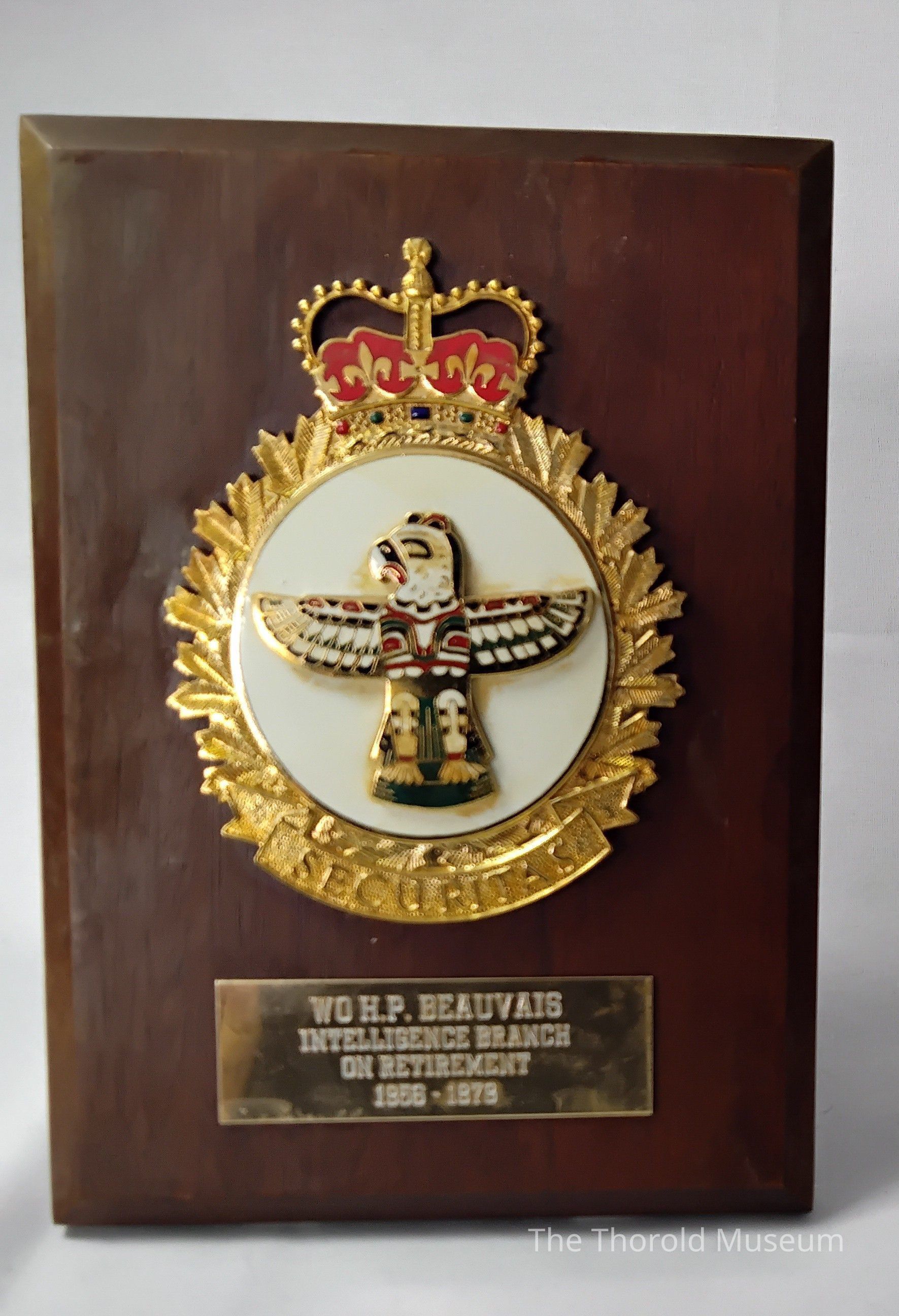 Towards the bottom on the front side of the plaque, on the silver rectangleTranscription