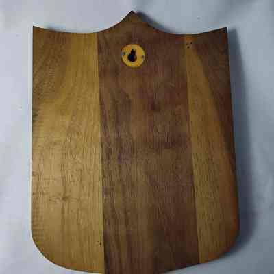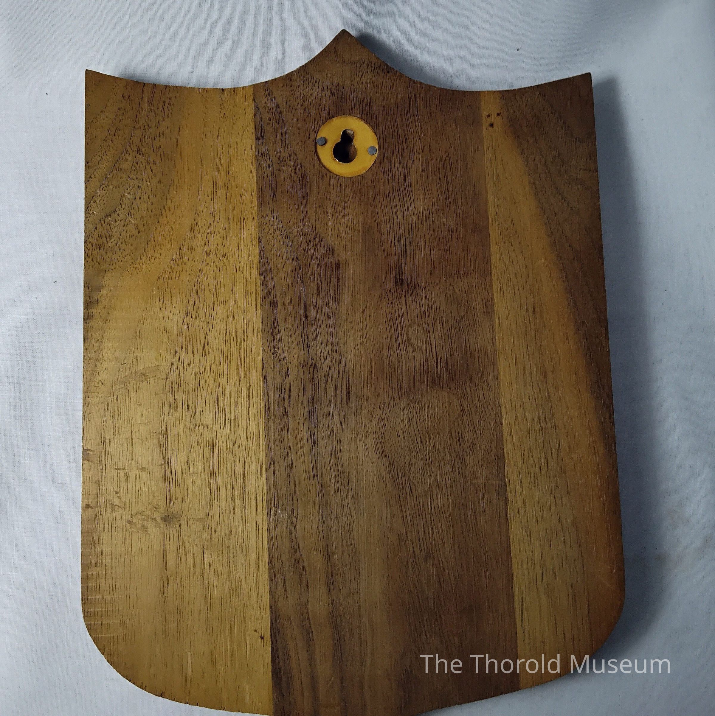 Towards the left side on the front of the plaqueTranscription