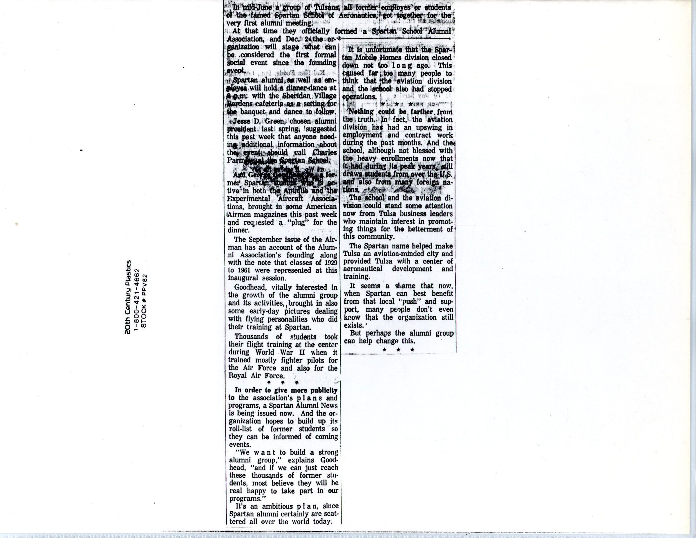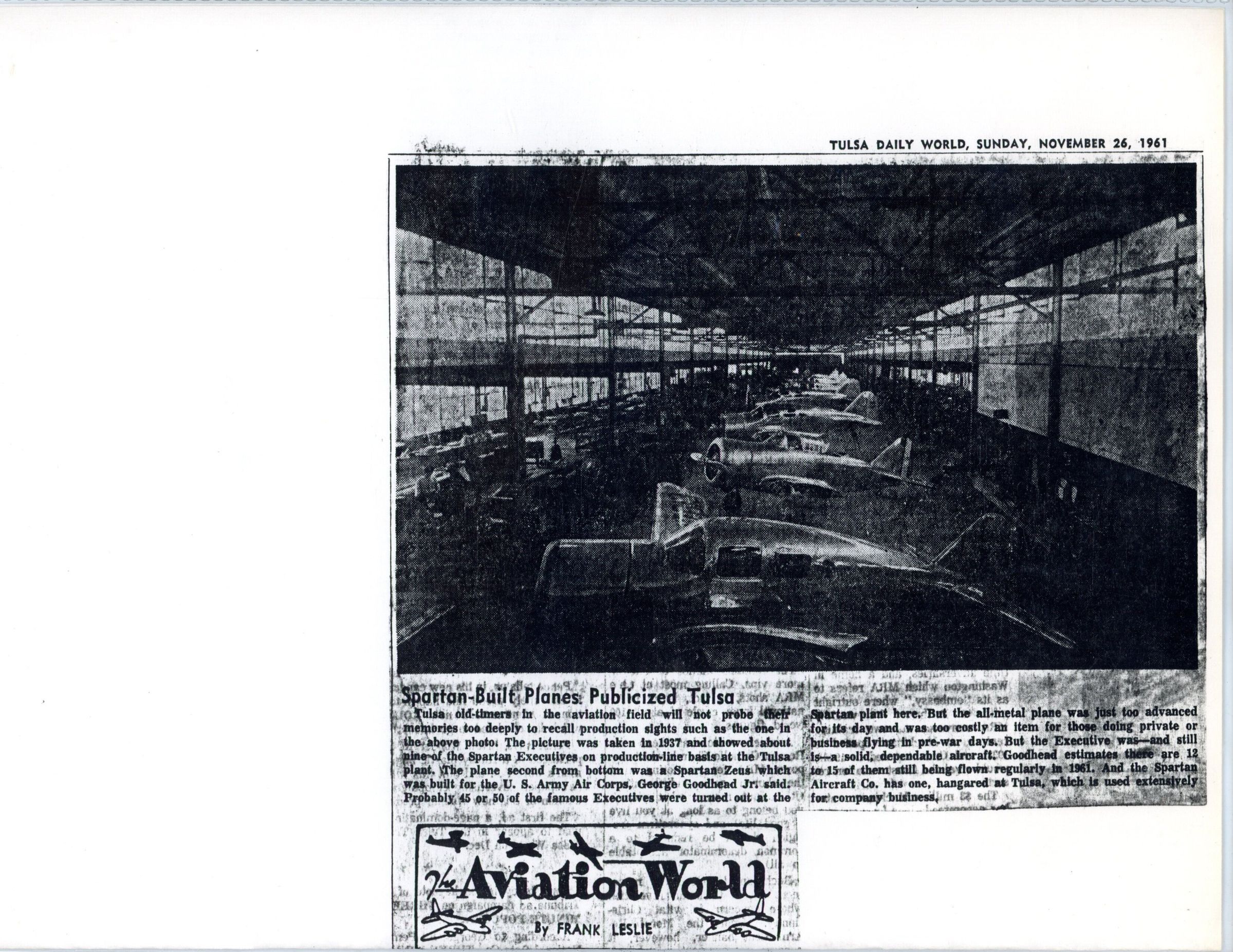 Tulsa Daily Word newspaper clipping about Spartan planesCollection