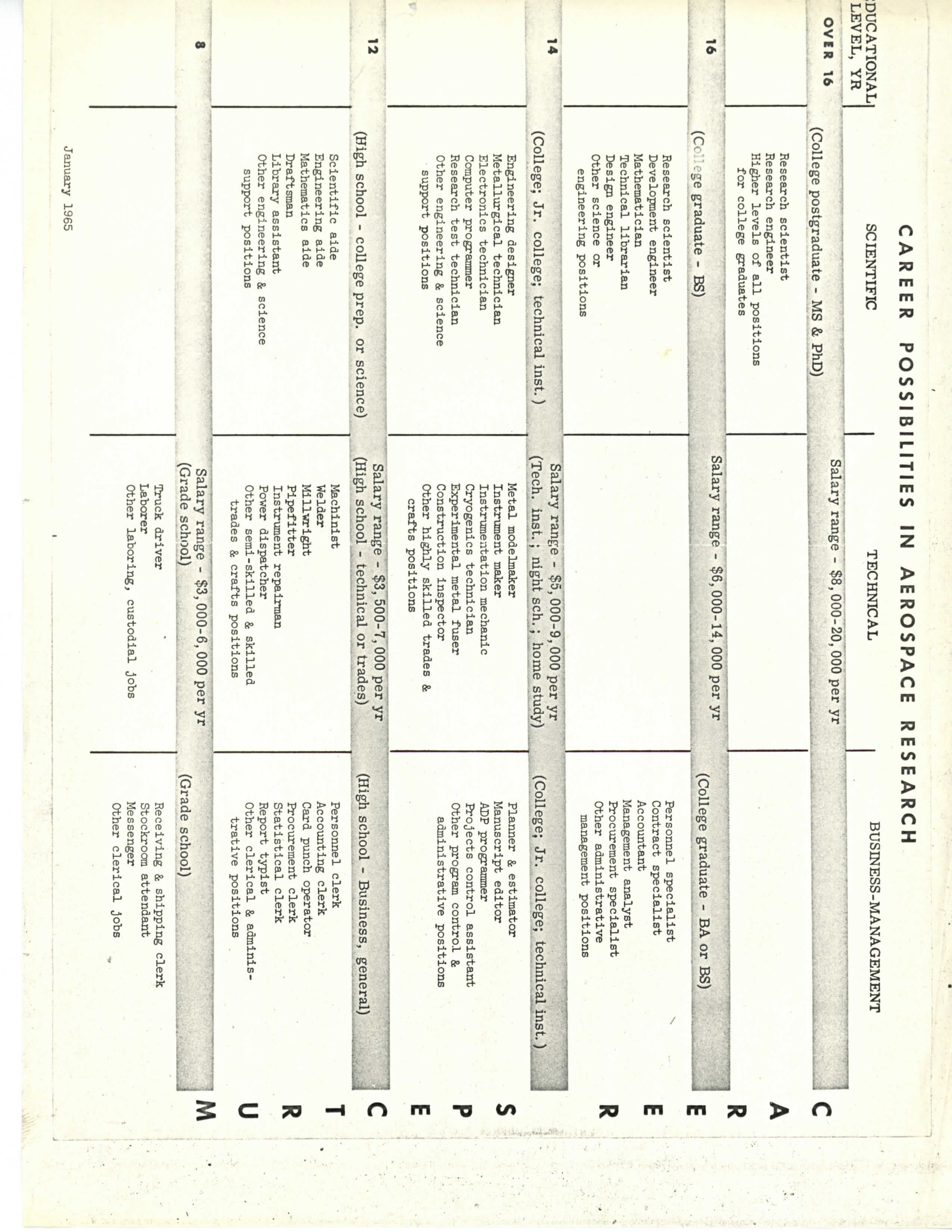 Career Possibilities in Aerospace ResearchEntry/Object ID