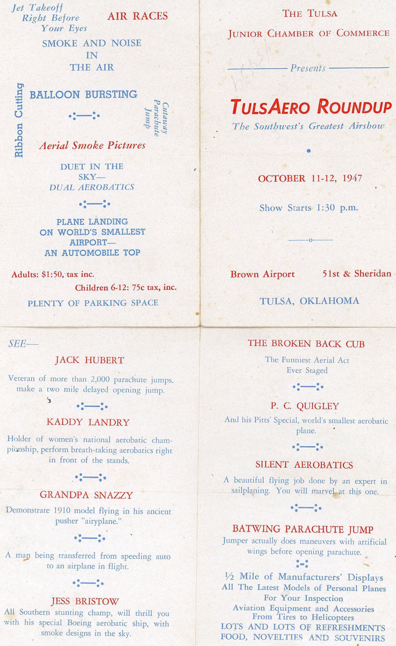 Flyer for TulsAero Roundup, October 11-12, 1947 in Tulsa, Oklahoma at Brown AirportCollection