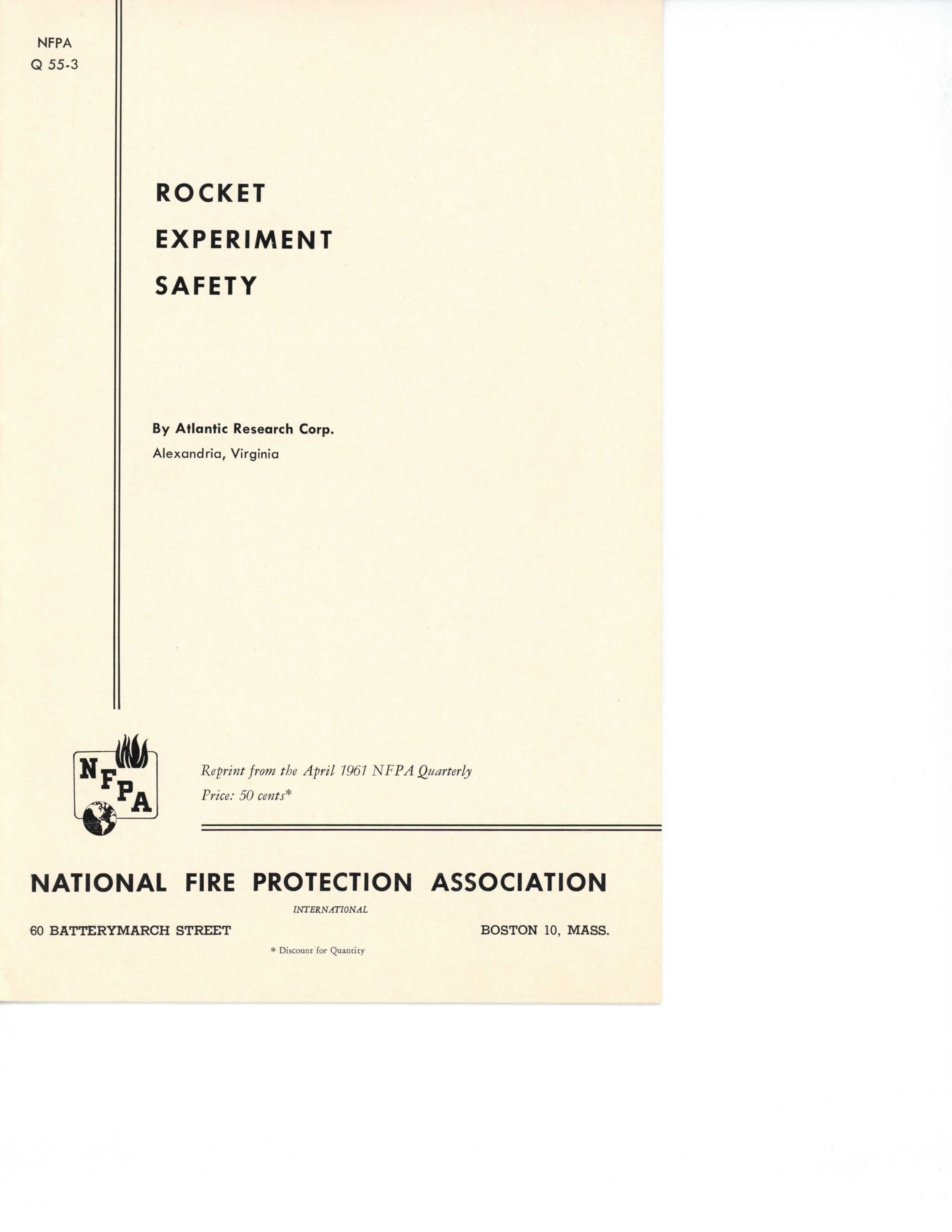 Rocket Experiment Safety by Atlantic research Corp.Entry/Object ID