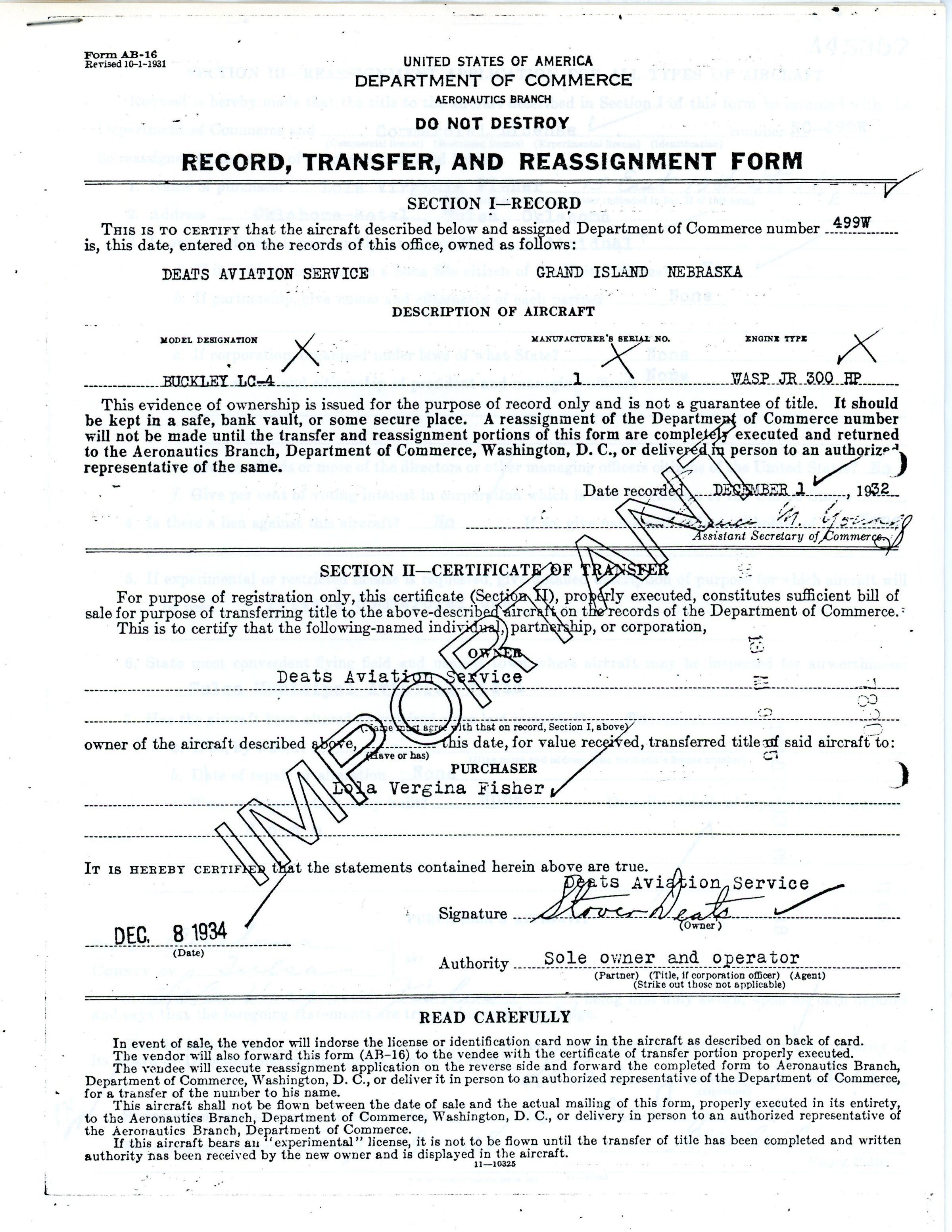Buckley Wichcraft LC-4 Department of Commerce RecordsEntry/Object ID